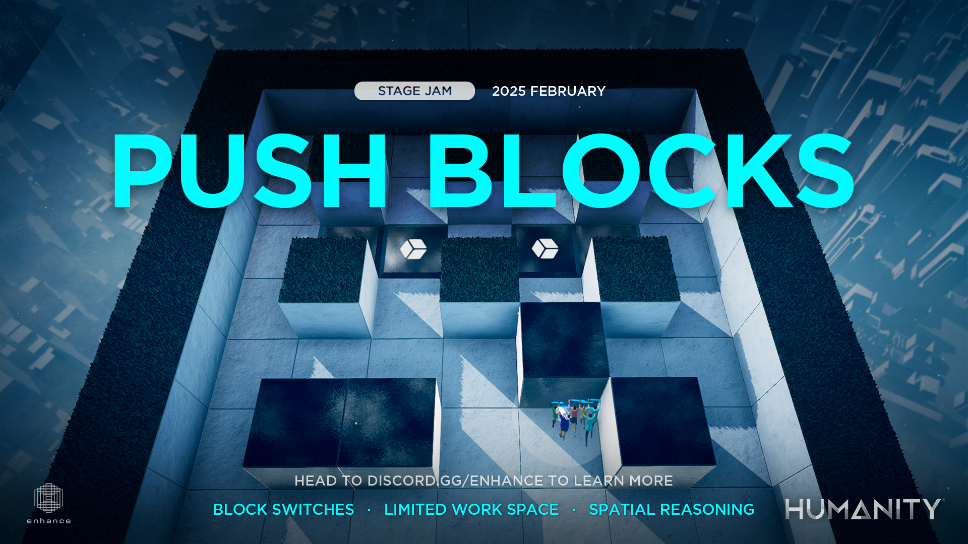 HUMANITY Stage Jams invite our expanding community of USER STAGES designers to craft new levels based on a central theme. For February 2025, the theme is PUSH BLOCKS, focused on using pushable blocks to create stages with a Sokoban-style twist. Pushing blocks to activate switches, navigate mazes, and more. Stage creators of all skill levels are welcome to participate, and if you’re just a player—keep your eyes peeled for a STAGE JAM playlist within USER STAGES highlighting stages made as part of the theme!