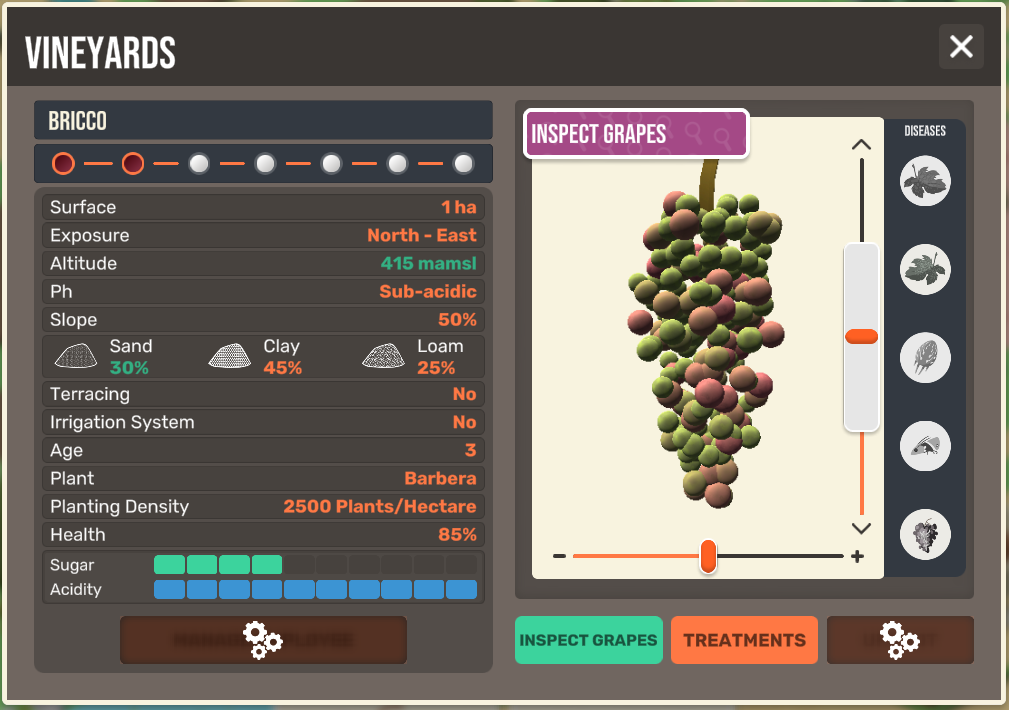Now you can see the density, terracing and irrigation directly in the vines inspector panel