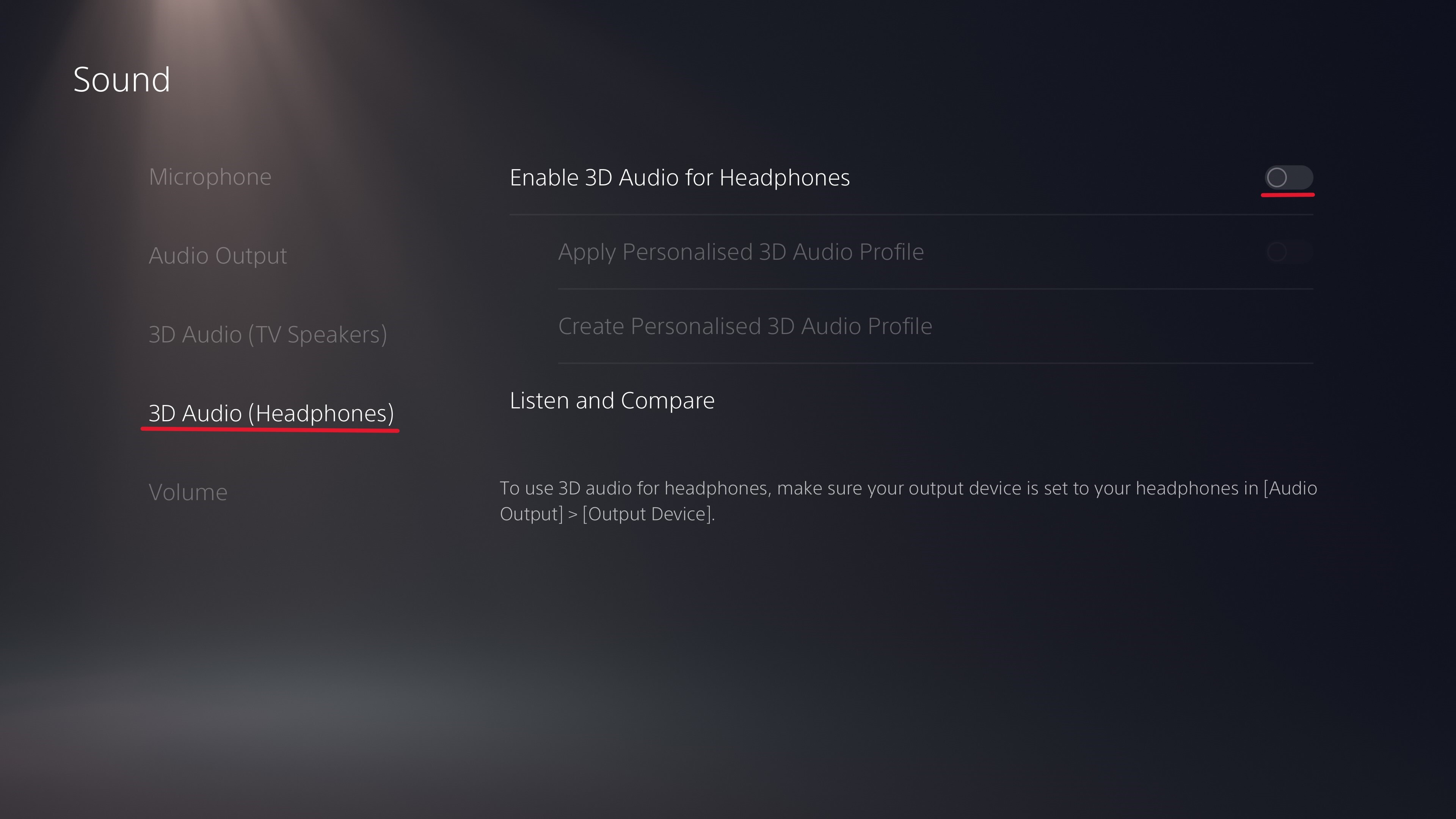 - In the 3D Audio (Headphones) Settings, deactivate the option “Enable 3D Audio for Headphones”