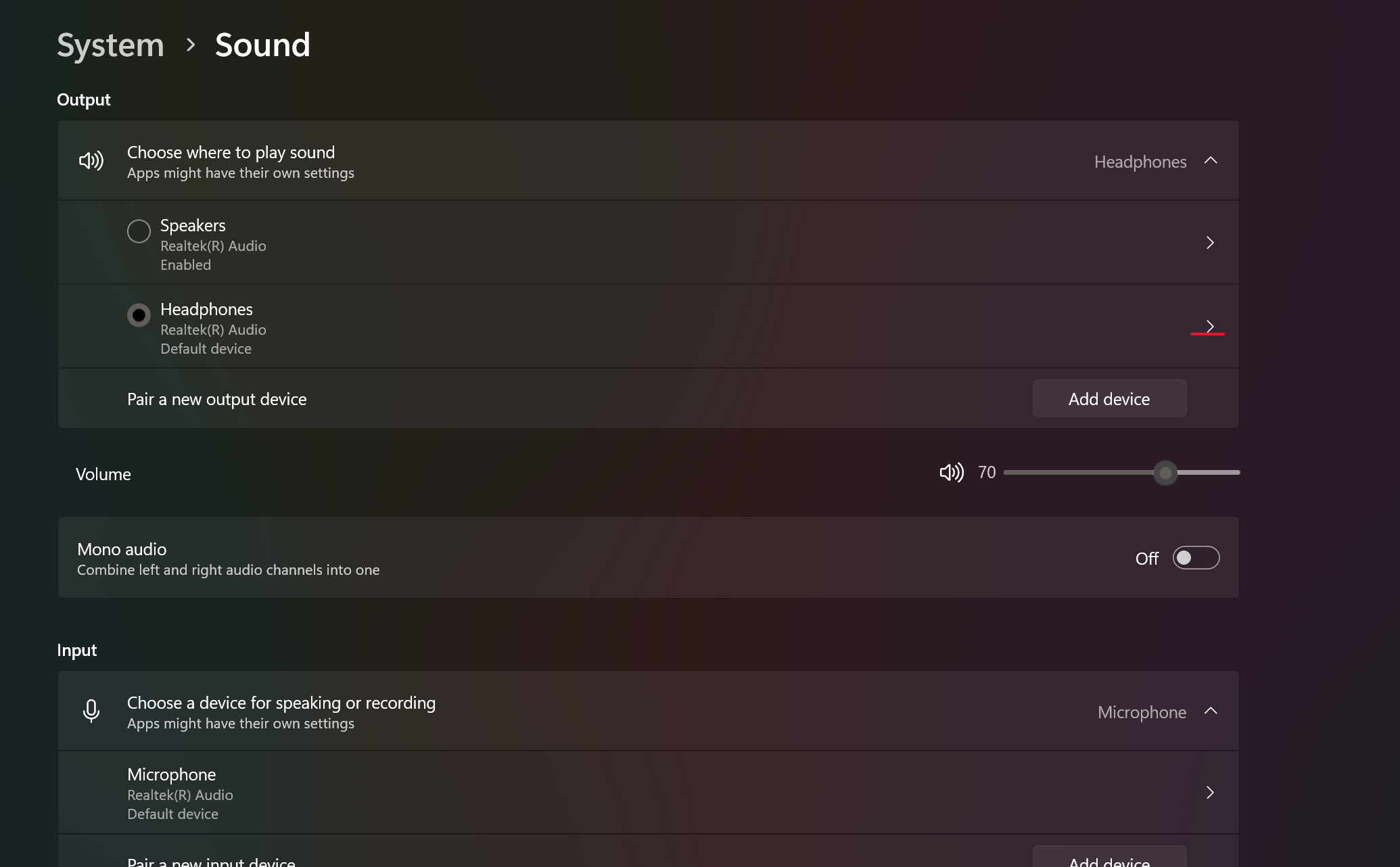 - Open your Output Device’s properties by clicking on the arrow on the side