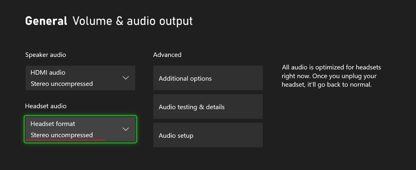 - Change the “Headset format” to “Stereo uncompressed”