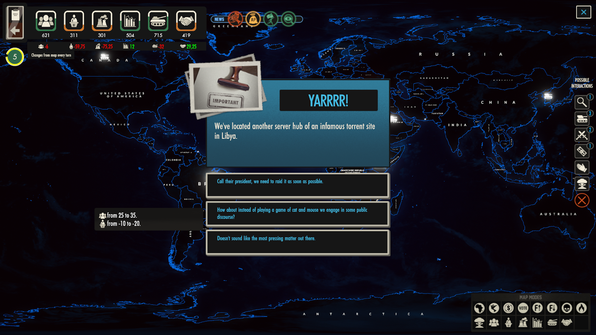 [*][b] Map events [/b]- changes on the global political stage have been speeding up with many crises popping up almost daily. With the Map serving as a hub of global events, we decided to update the problems you may encounter as the President. This is where our creativity and research will shine. This is also where your help may come in handy, but more about that later.