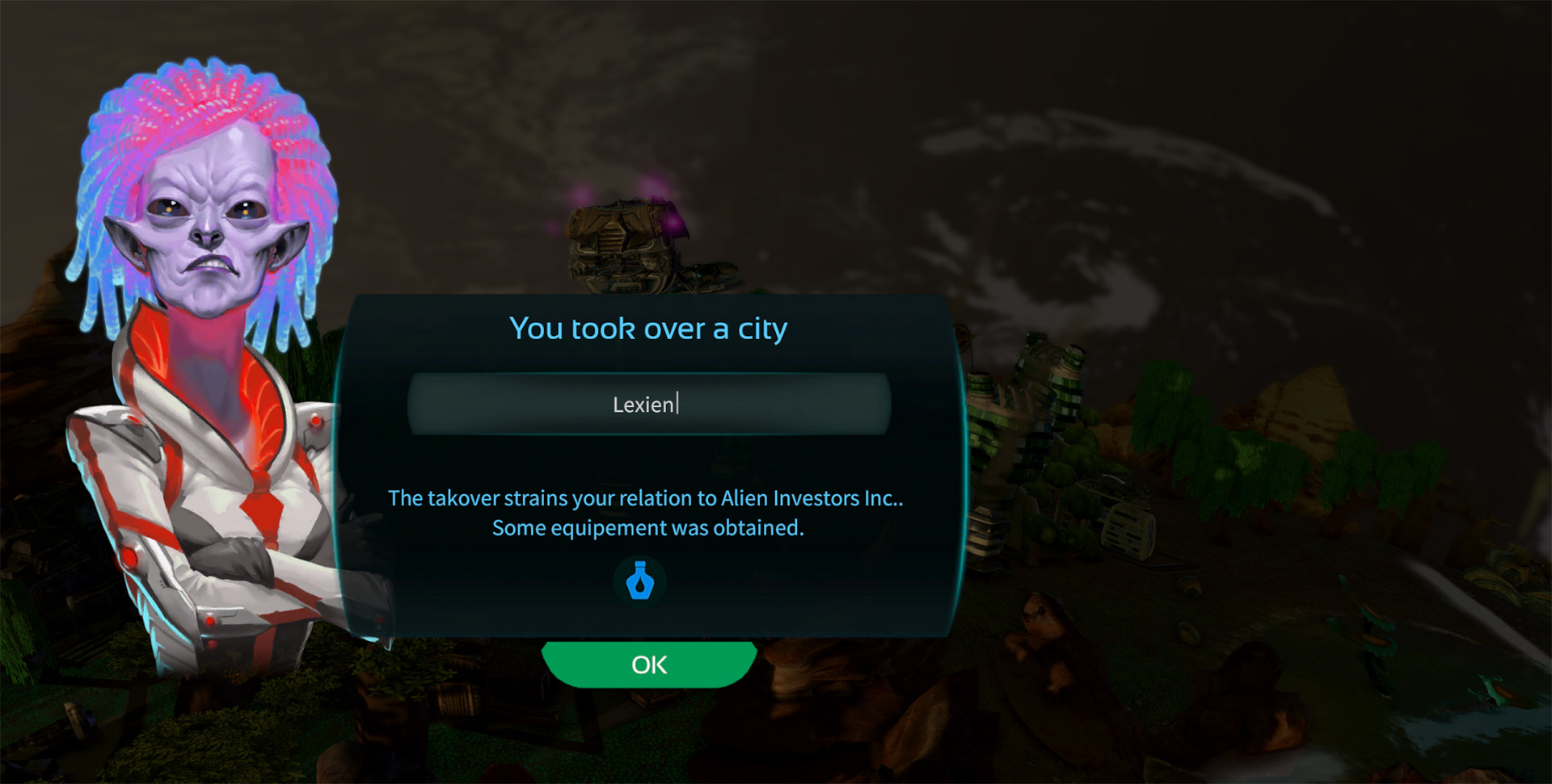 We built a large popup that solemnly announces that you have successfully taken over a city. And also indicates if you have captured equipment in the process, which means you have taken certain items from the enemy.