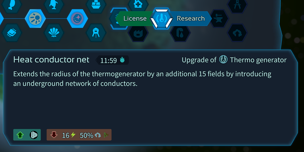 The thermal generator plays a central role in colonizing and terraforming inhospitable planets. Therefore, this has now received a range upgrade that you can unlock via research.