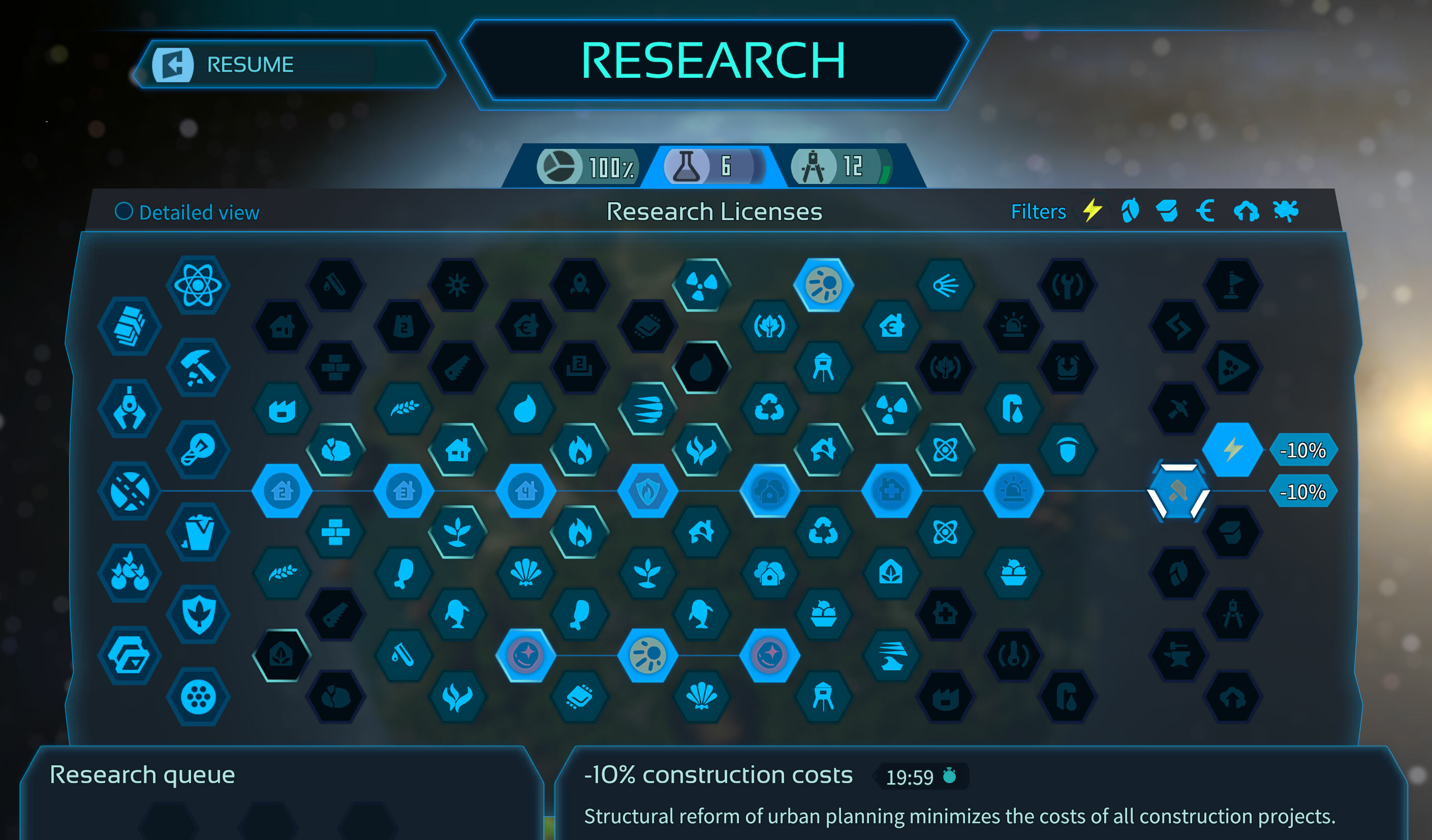 With an improved filter in the research area, you can now see even better which researchable upgrades have certain positive effects.