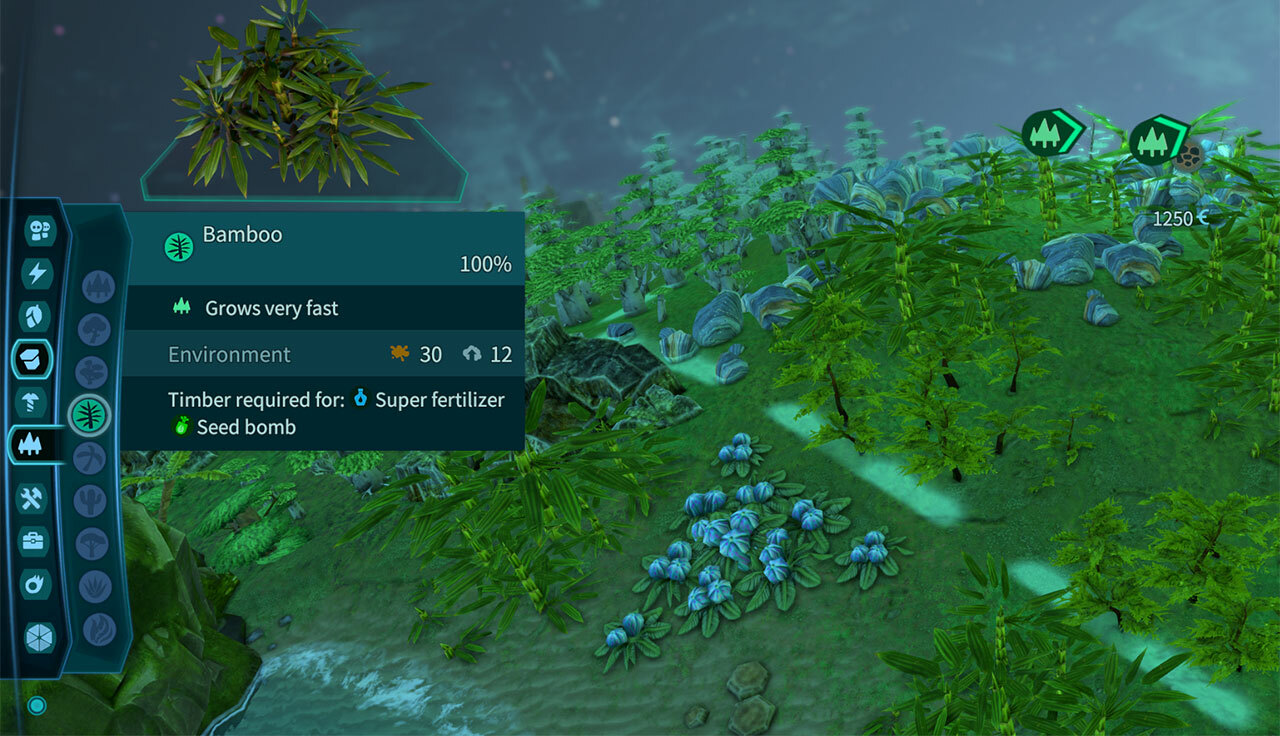 For a game that is not least about climate change, we have to note that the function for planting forests and reforestation was surprisingly difficult to find. Although we had built a very convenient control option that automatically plants the best fitting forests, this was unfortunately hidden in the sub menu Tools. Quite occasionally the feedback came "why this function is so strangely difficult to use". All forests are pretty crucial buildings in the game and we have now combined the forest menu with the automatic forestation tool so that you can automatically see which appropriate forest is placed and what individual values the tree species has.