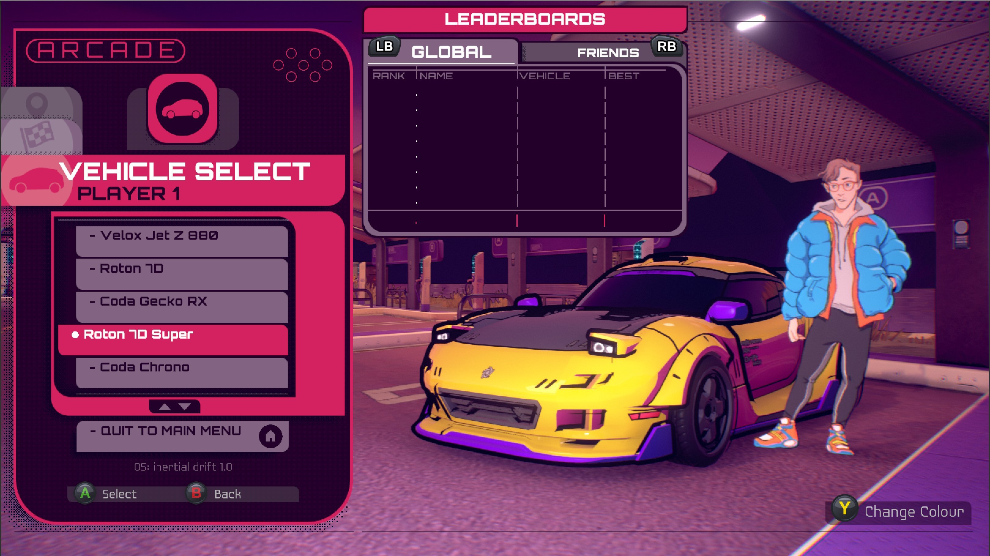 Perhaps most importantly however, we have overhauled the leaderboards. From today, there are new individual Time Attack Leaderboards for each car - it's a big move and will hopefully be the groundwork Inertial Drift needed to make this part of the game more compelling and competitive - allowing you to prove your worth with each individual car against other players globally.