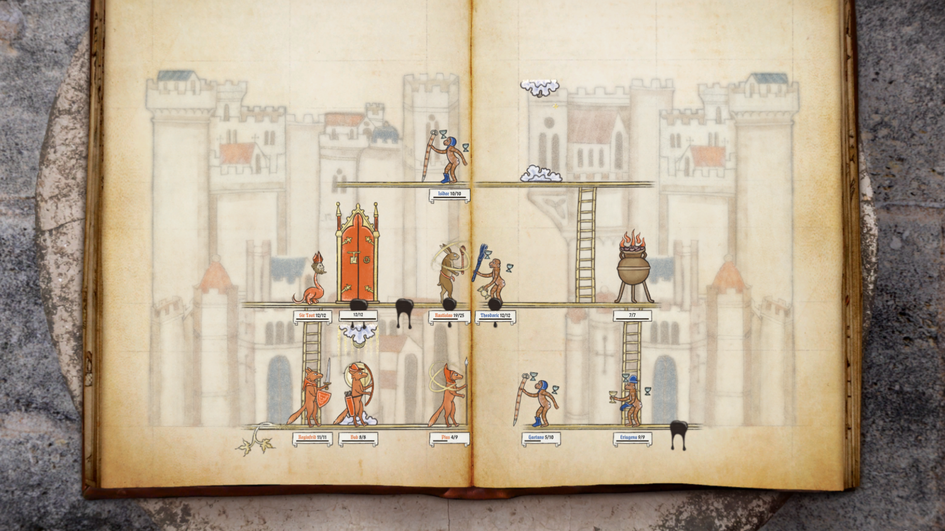 Now that we introduced the new Inkulinati Master, allow us to tell you a bit about the Professor’s formidable [b]Ape Army[/b], featuring the mighty Broom-Wielding Ape, Belt-Wielding Ape, Goblet-Wielding Ape, and the ever-curious Professor's Assistant. Their extraordinary capabilities are an adventure waiting to unfold in itself, so we will leave the joy of discovering their prowess entirely in your hands. However, we’ll leave you with one tip. What unites almost all Apes (except Profossor's Assistant, he has more important things to do) is their profound appreciation for Frenzy. Each Ape soldier possesses one level of Ape's Frenzy, which will increase by 1 at the end of their turn. Now, you may be curious about the wondrous effects of Ape's Frenzy. As this captivating Frenzy takes hold, it removes Infection, and with each level gained, random effects will be added to Ape’s attacks. A word of caution though: just like with everything in life, it’s all about balance. Should Ape's Frenzy exceed the maximum level of 3, a Headache will befall, leading to a loss of the Ape Frenzy status. As with any great power, moderation is indeed the key to triumph.