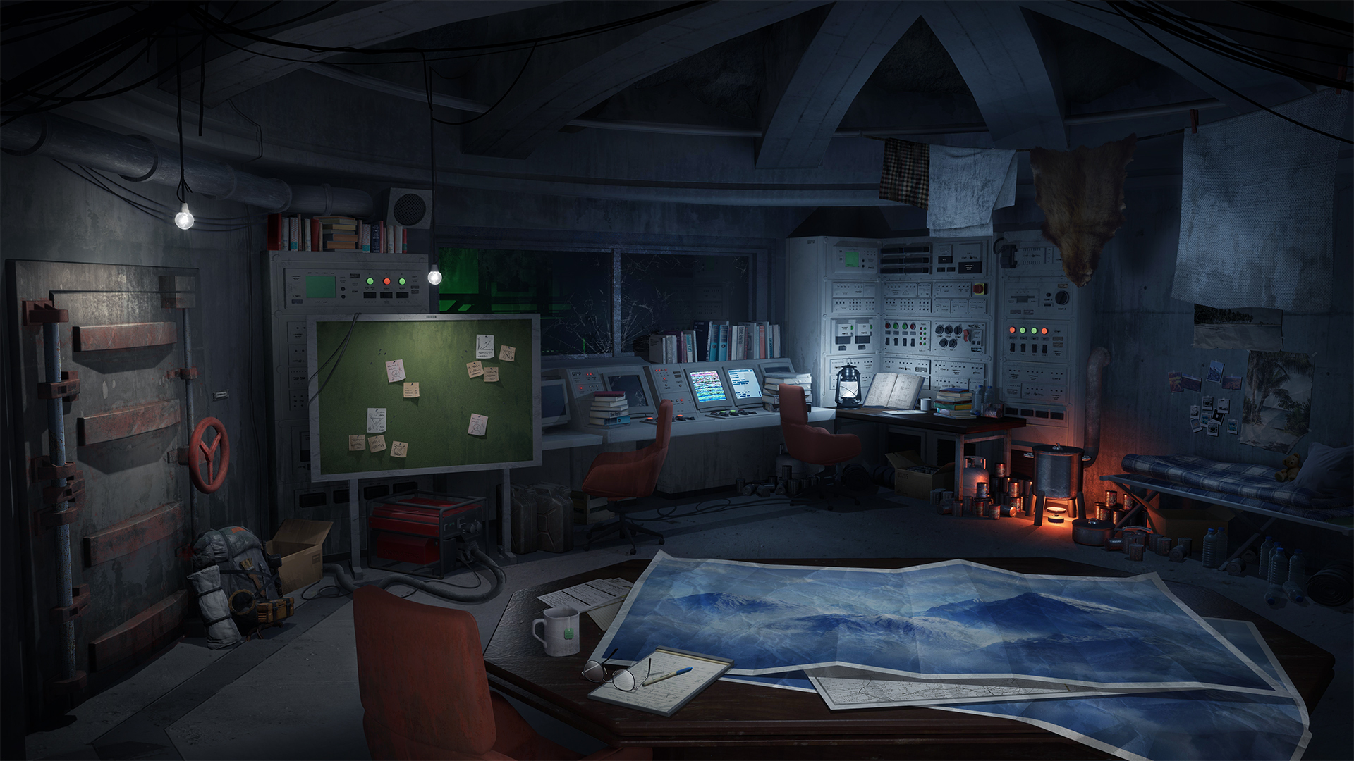 To better integrate the base into the surrounding story and world, we looked to references and inspiration. Influences were, for example, modern research stations in polar regions or nuclear reactors from the 1970s. But a villain's lair also contributed to the design. A little less equipment and a few changes later, our first draft has evolved into a beautiful (if somewhat somber) retreat.