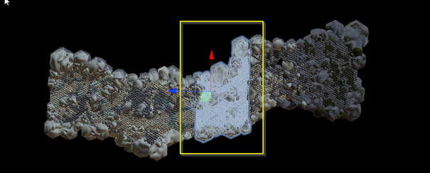 Handcrafted Mountains are made of a chain of different areas. In the picture above you can see the structure of a mountain. The highlighted sector is an area.Small decoration objects and bigger chunks are randomly generated at every game start.But these chunks have also small handcrafted areas within the bigger areas like in these two pictures.