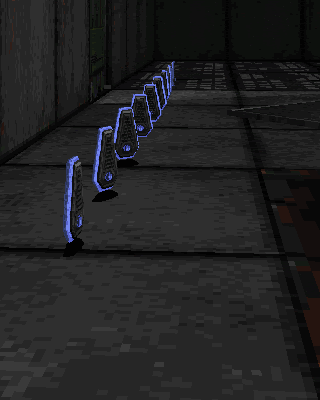To balance health we decided to have both instant use Medpaks and carriable Medkits. Mappers were told to restock the player in the next area after major combat (or long string of fights), and sparsely around the edges of those combat areas. Shelly’s health declines rapidly when not successfully dodging hits, so the combination makes players feel like they are living on a knife’s edge but still able to recover from mistakes. A late game addition was the occasionally spawning Emergency Syringe to help stay alive, as some players felt slightly too punished in close fights. To keep balance there’s an actual check for your current health, and the number and frequency spawned depends on difficulty.
