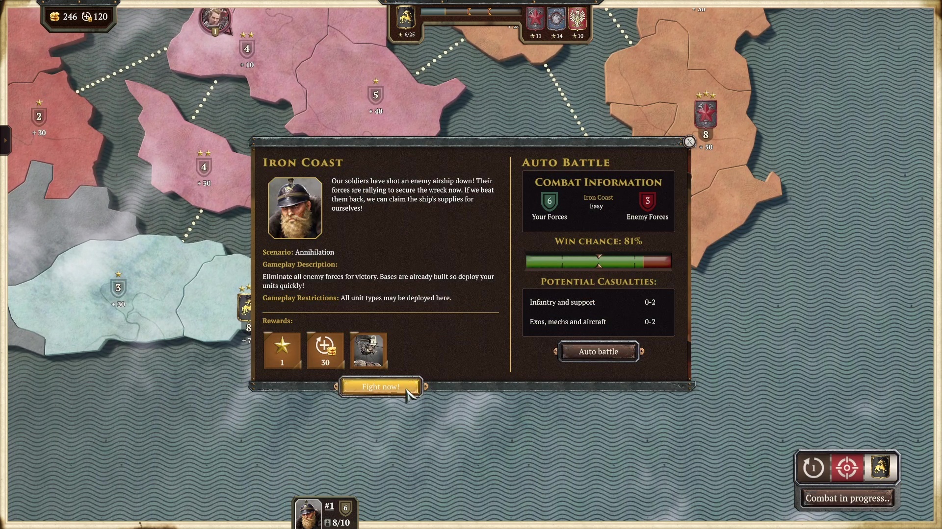 Win victory points through battle and claimed territory. Once you’ve claimed enough for victory on the campaign you can carry on to dominate the continent entirely. Coloring in with your faction color as you see fit. The fewer turns you complete victory in, the higher your overall campaign score.