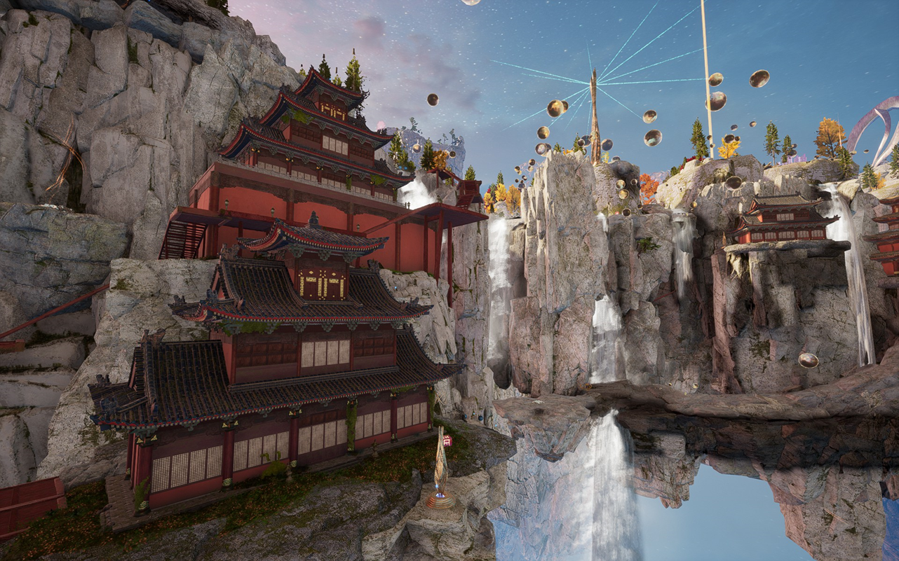 This rustic, yet jaw-dropping environment finds balance in its contrasts, like its tiny island in the middle of a massive open-air crater. The idea for combining the rugged Canadian Niagara Escarpment and China’s stunning hanging temples came from wanting to celebrate some of our team members being from these parts of the world.