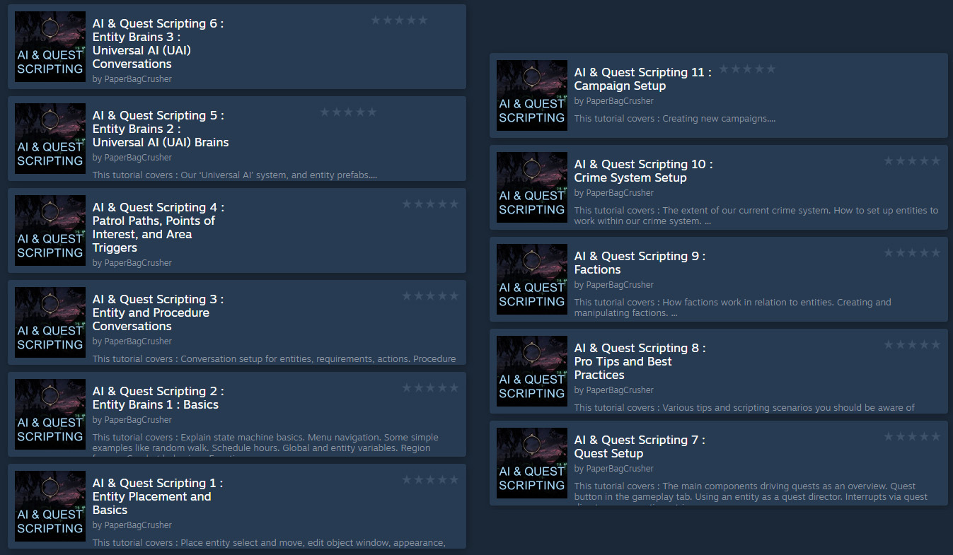 We've just finished the second wave of our modding tutorials. There are now 25 guides total that cover level design and AI scripting. The next phase will cover modding and steam workshop. The new guides don't seem to be visible on the community hub yet so you can access them with this link for now. Link : https://steamcommunity.com/profiles/76561198086002749/myworkshopfiles/?section=guides&appid=1112620&p=1&numperpage=30