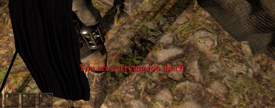 - Now shows a message about carrying too much when you are over your carrying capacity. Used to you would just go slower until you stopped without knowing why.