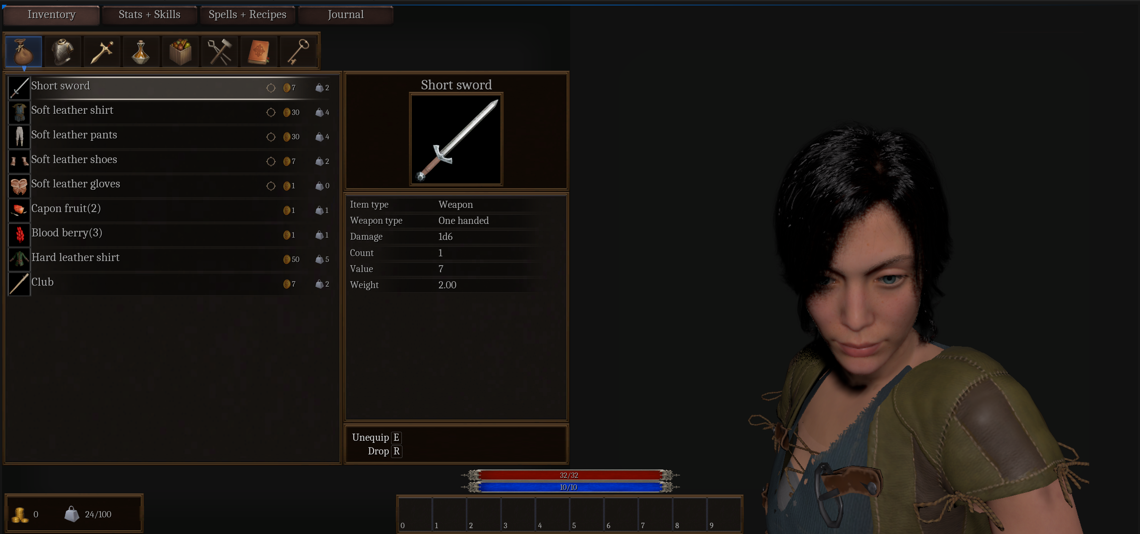 I have the inventory system working. You can equip/unequip weapons and armor.