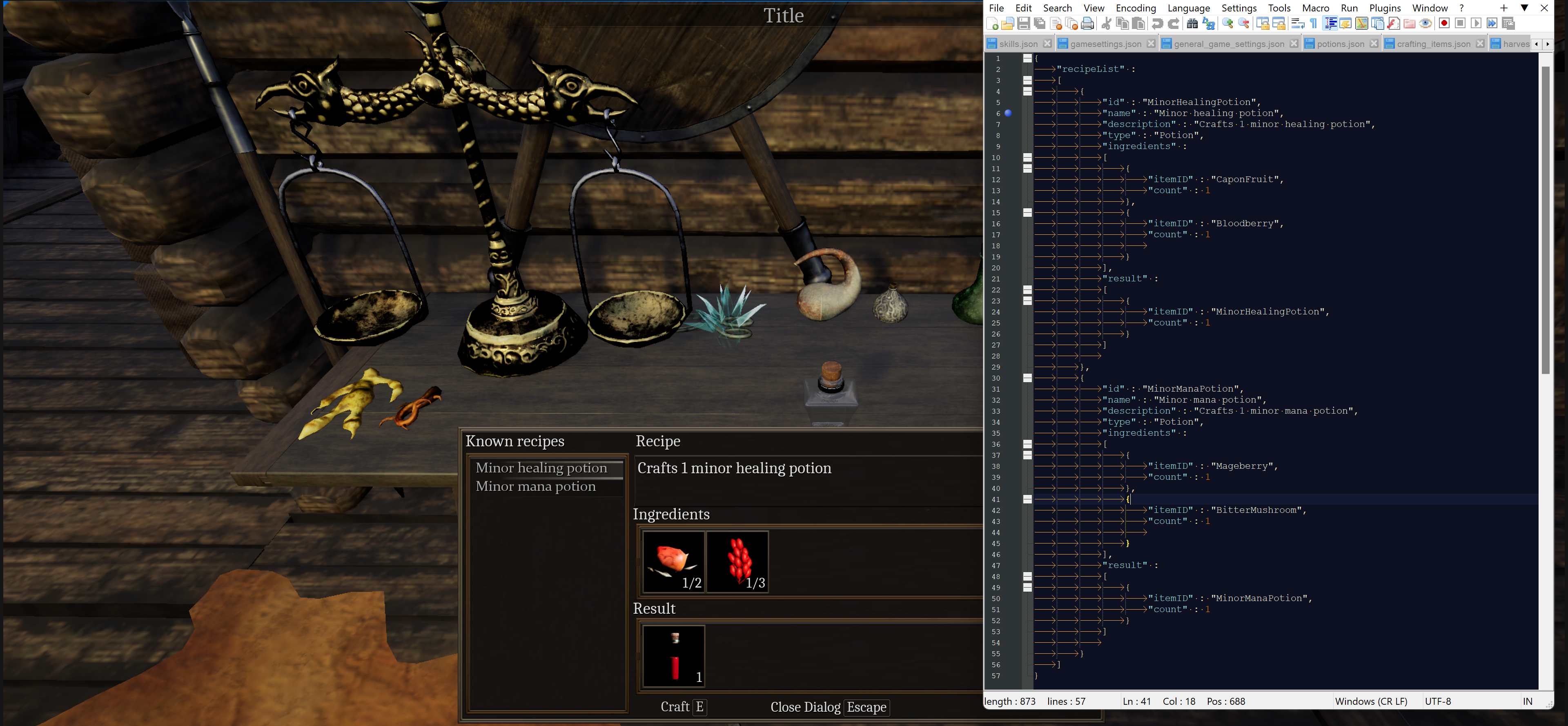 This shows the JSON file for configuring and adding recipes. The crafting station reads this JSON file to determine what you can craft. You will be able to add additional JSON data in mods to add your own recipes, items, etc.