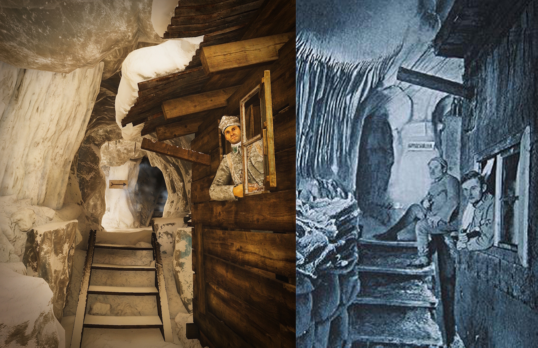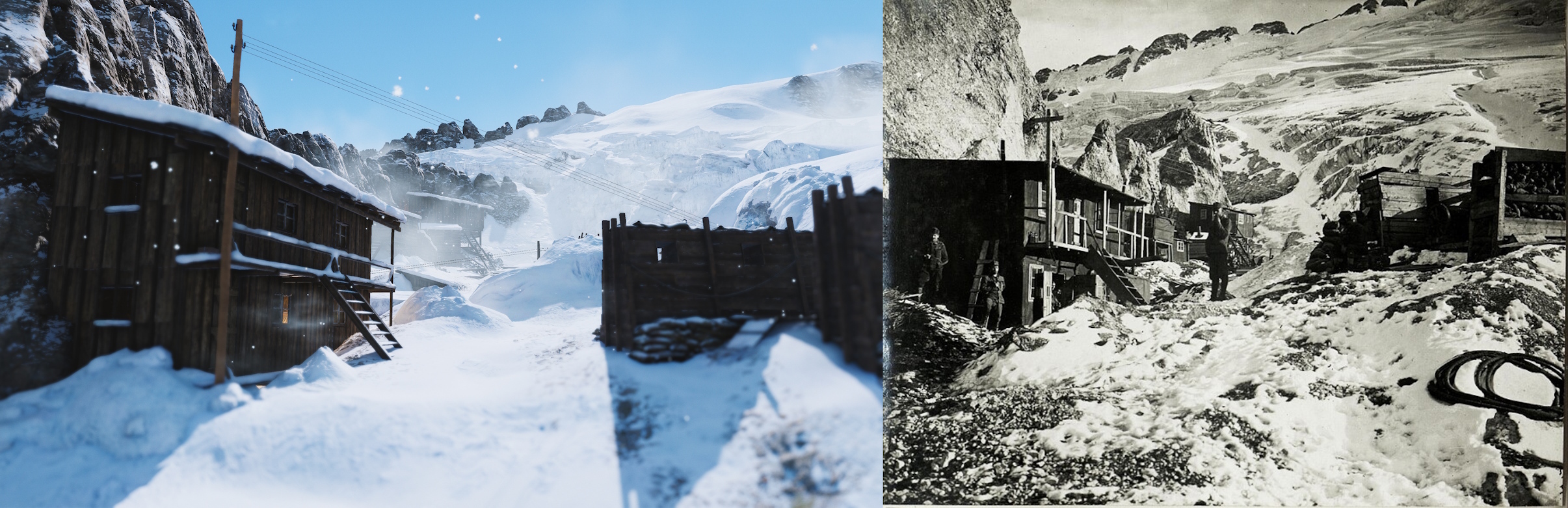[i]Here’s a comparison image from our blog about the creation of the Gorizia map. Things like trenches, barbed wire, and constructions like those seen here might seem less exciting than big-ticket items like the train station that serves as an objective… but they’re much more common and getting them right is vital to establishing an authentic atmosphere.[/i]