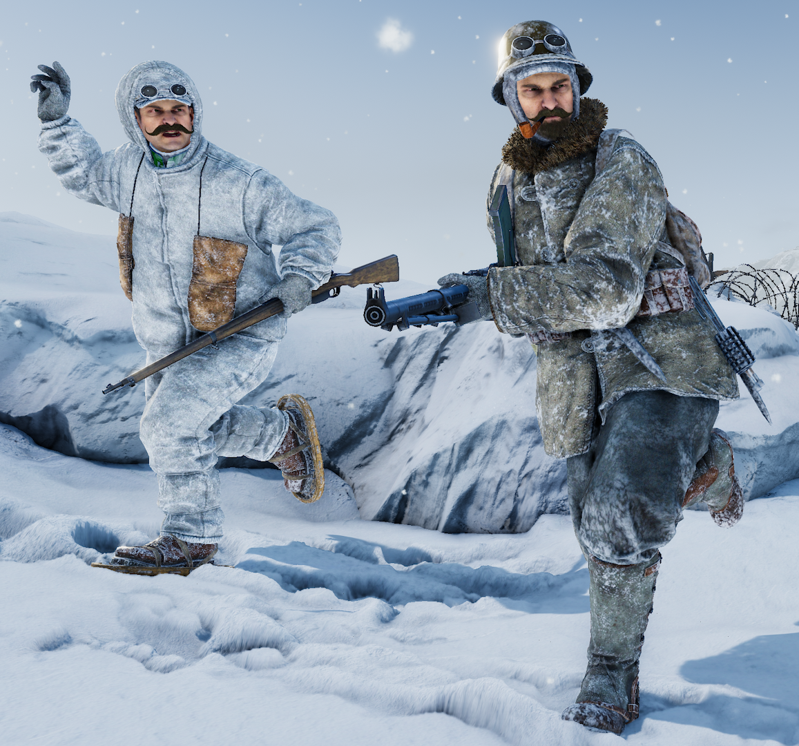 We’ll round off with a few more teasers from the upcoming cosmetic DLC, full of extreme cold weather clothing. You enjoyed last week’s [strike]Sgt. Chungus[/strike] Italian engineer, and we hope you’ll be as enthusiastic for this pair of Austro-Hungarian assault troops and their impeccable mustaches.