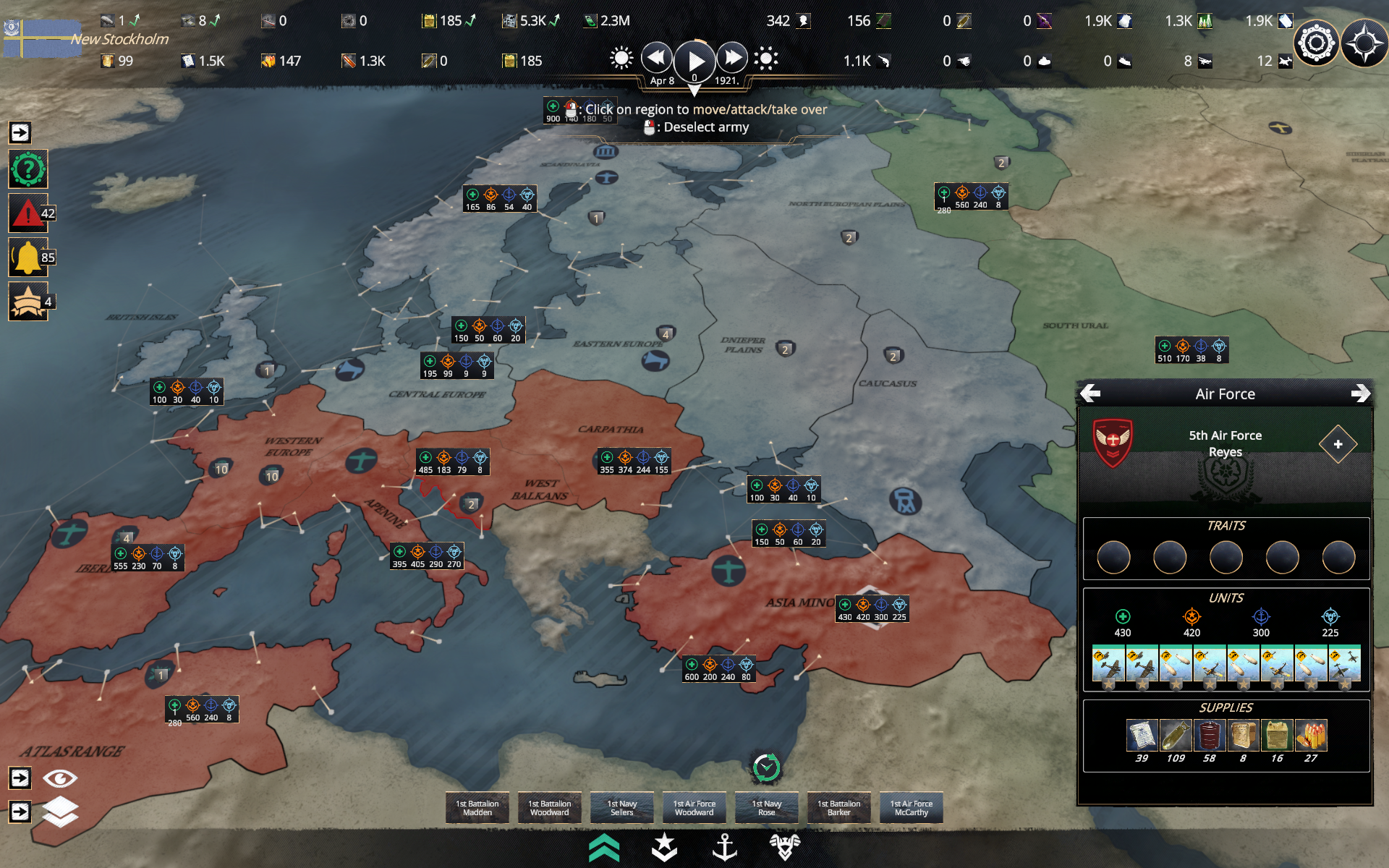 - [b]Supply state[/b] – Is your army well-supplied, or are they scrounging for bullets and sharing a rifle between ten infantrymen? Supply chains matter!