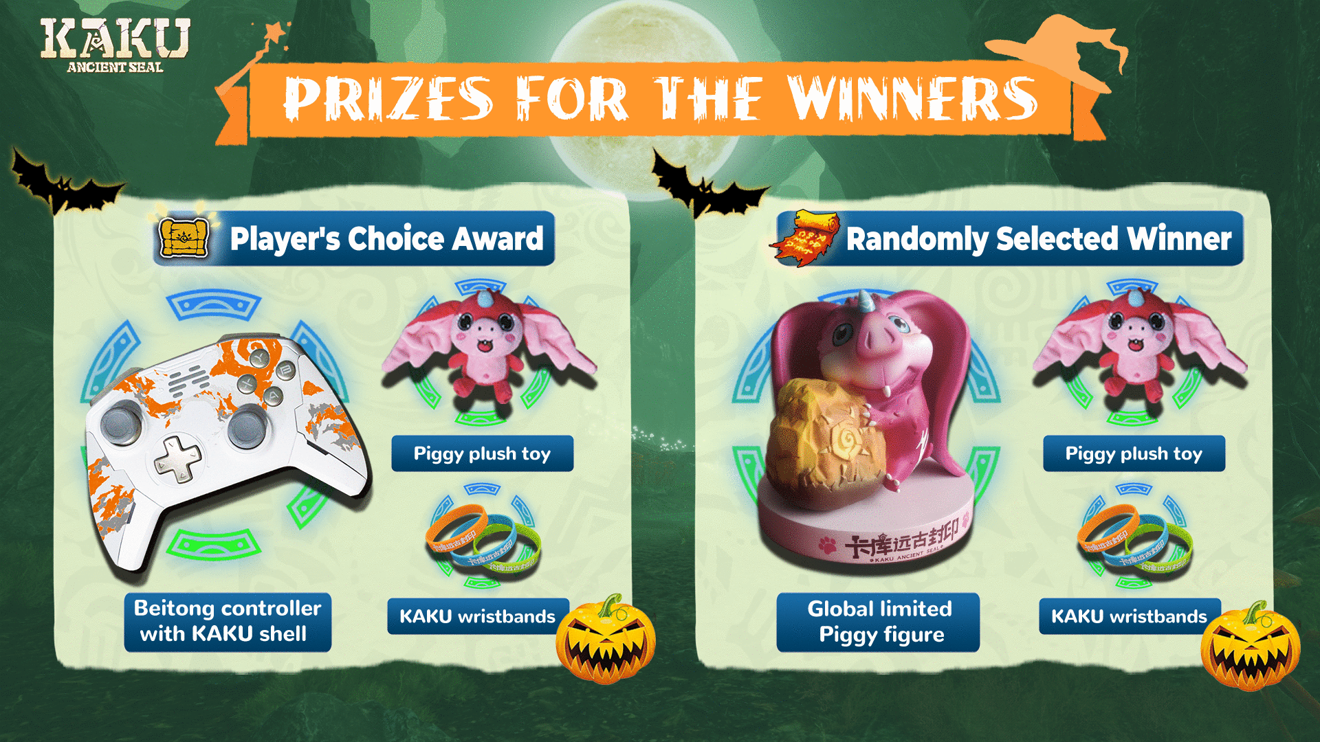 - [b]Player's Choice Award:[/b] One winner will be determined by a vote from all players, the one with the highest number of reactions will win this award. The prizes are Beitong handle with a custom KAKU casing, a Piggy plush toy, and a set of KAKU customized wristbands;