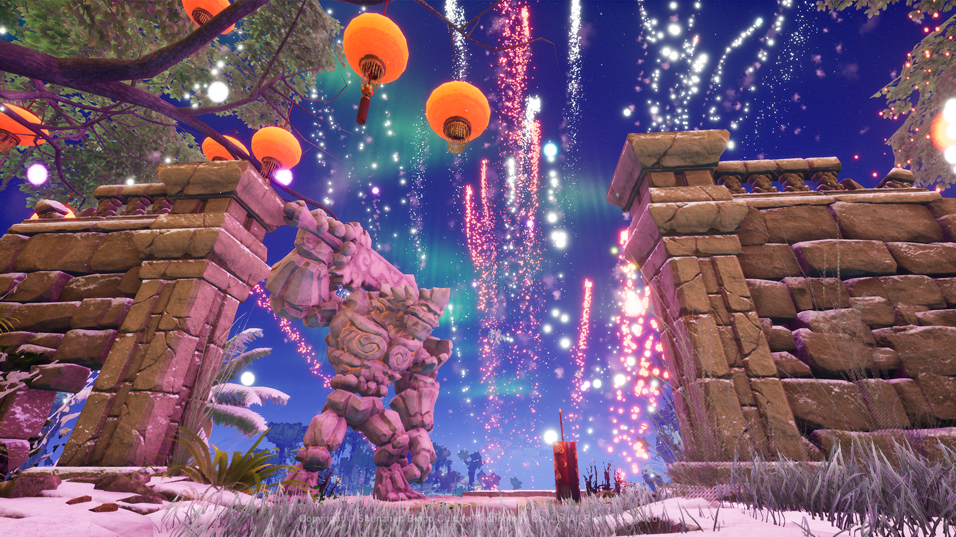 After retrieving the dragon ball, the divine dragon will bring Spring Festival fireworks for everyone. When the fireworks display ends, you can interact with the firecracker next to the Ancient Guardian statue to trigger it again.