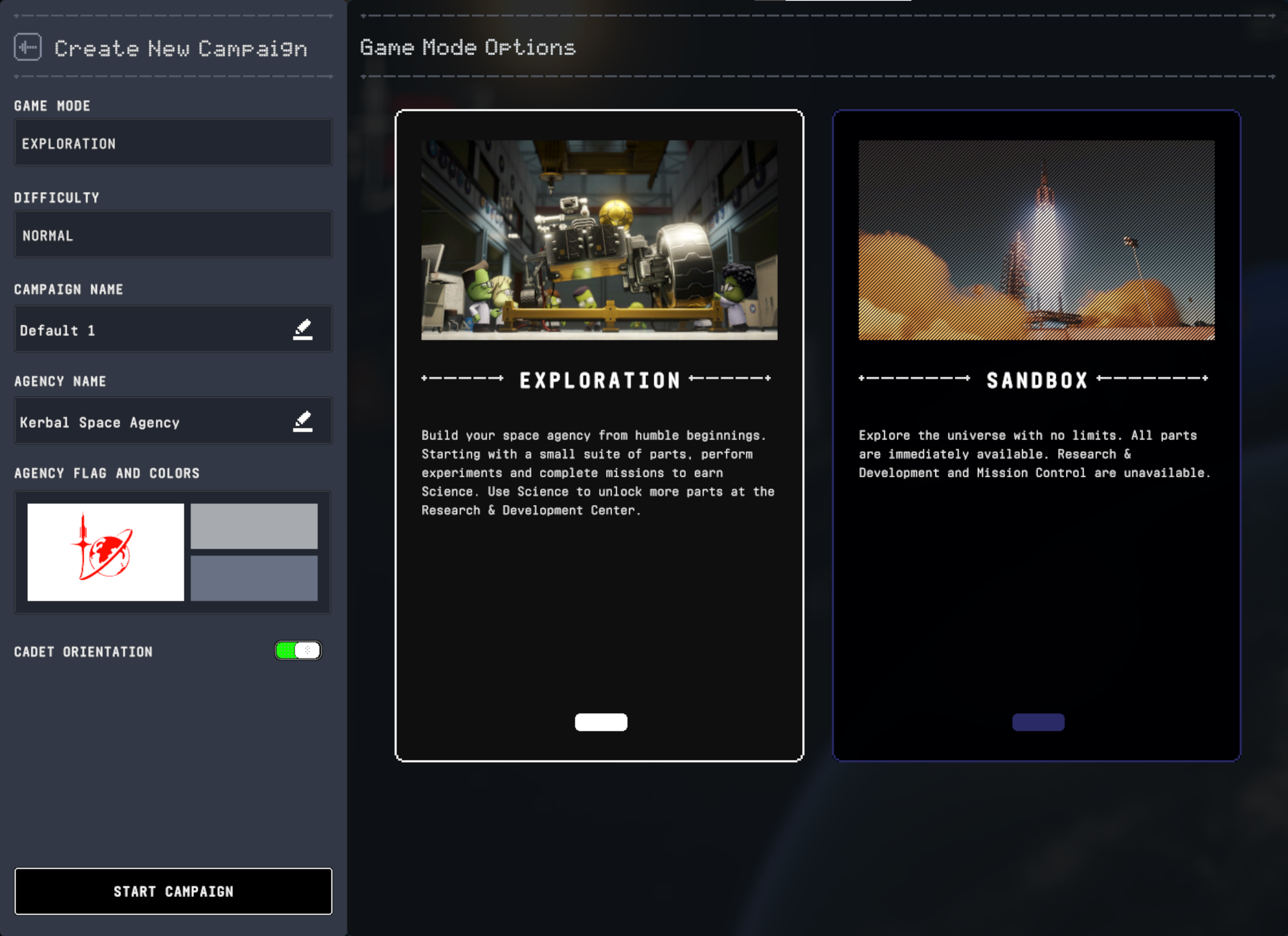 The For Science! update introduces a new game mode called Exploration Mode. In this mode, you collect and transmit Science from unique biomes across the Kerbolar System; and then redeem Science to unlock new part technologies. [b]Why is it called Exploration Mode and not Science Mode? In future updates, this mode will allow for resource collection and utilization[/b], as well as the establishment of automated resource delivery routes. We want you to be able to continue the campaigns you start in December through all future colony, interstellar, and resource-gathering updates.