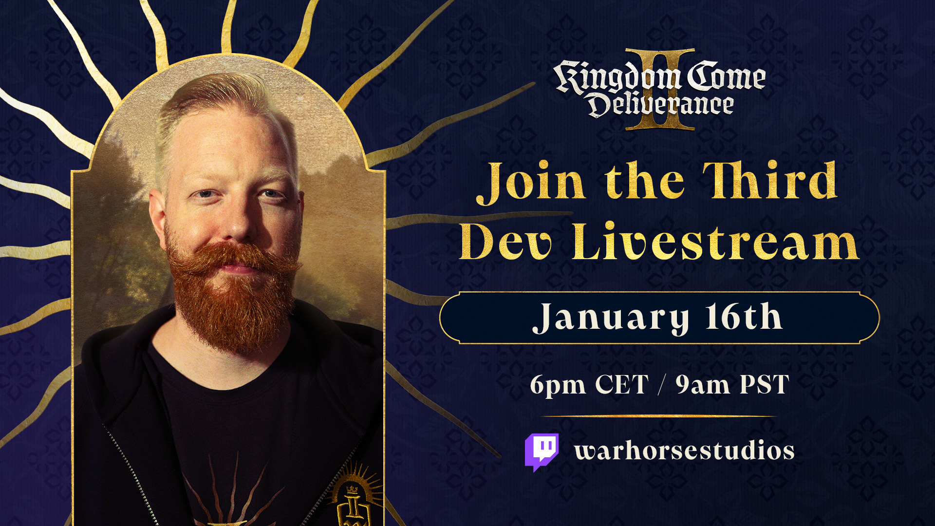 Today, 16th January, 6pm CET / 9am PST—mark your parchment. Sir Tobi returns for the third KCD2 dev livestream on [url=https://www.twitch.tv/warhorsestudios]Twitch[/url], joined by a special dev guest. Expect fresh gameplay and sharp insights—don’t miss it.