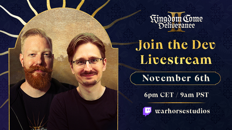 Expect exclusive details, behind-the-scenes insights, and a closer look at what’s to come before launch. [b]???? November 6 ???? 6pm CET / 9am PST ???? [url=https://www.twitch.tv/warhorsestudios]twitch.tv/warhorsestudios[/url][/b]