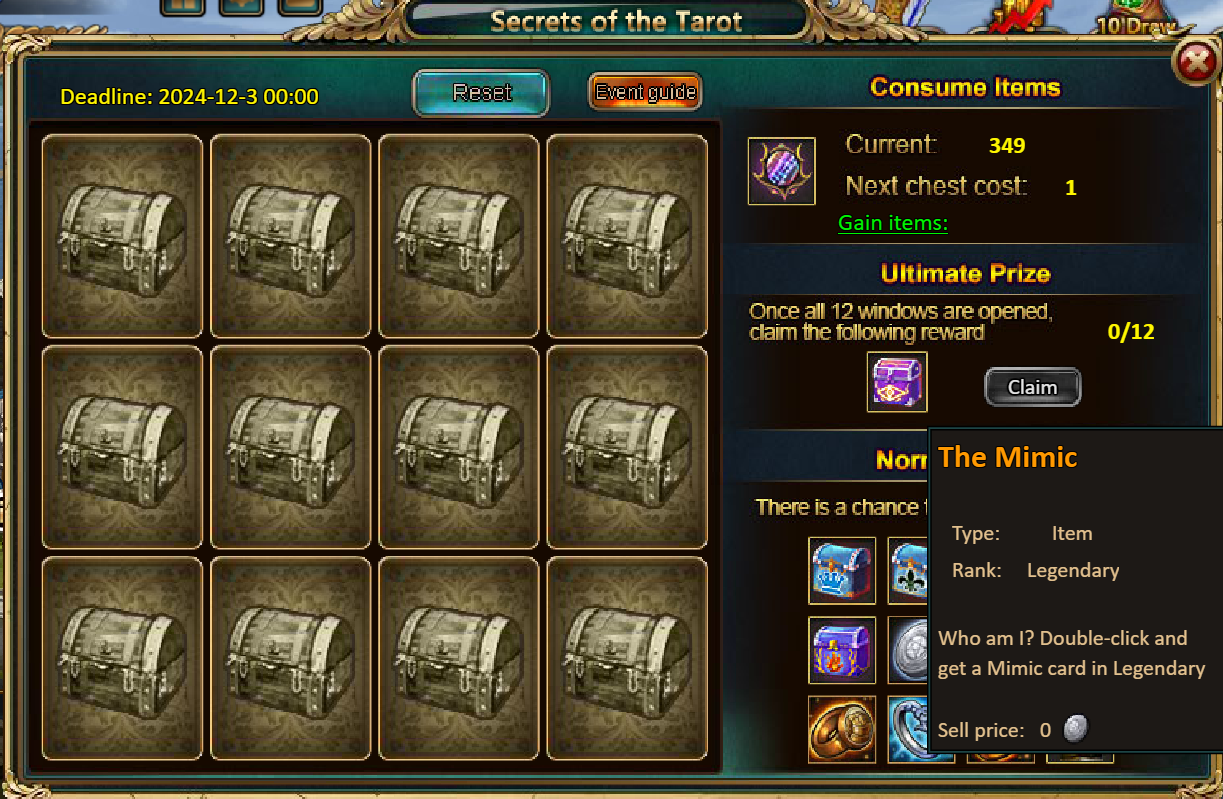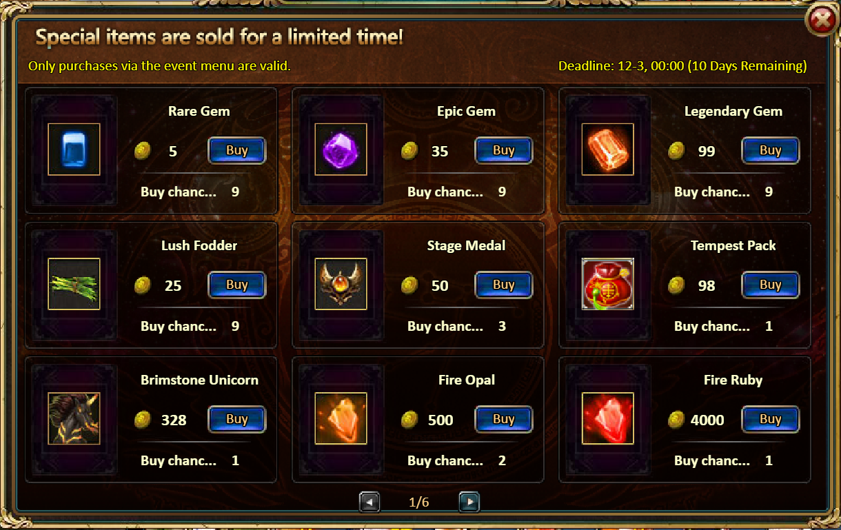 Consume 5,000 gold coins: Lunar Chest (Epic)*2, Fire Opal*2, Mystical Valley Ticket*5