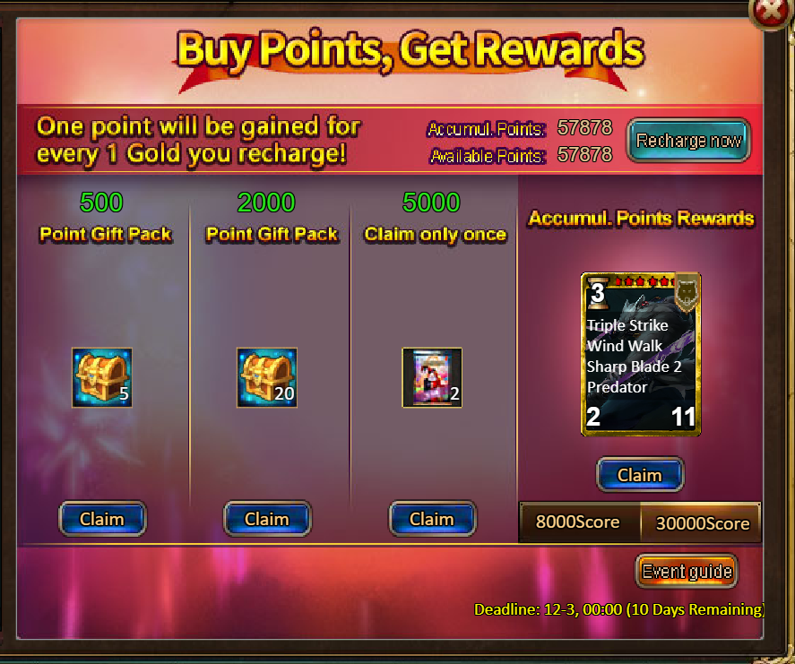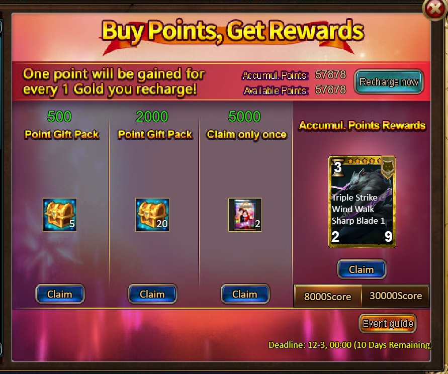 2.Buy Points, Get Rewards: 8000 - Santoryu (Legendary) / 30000 - Santoryu (Godlike)
