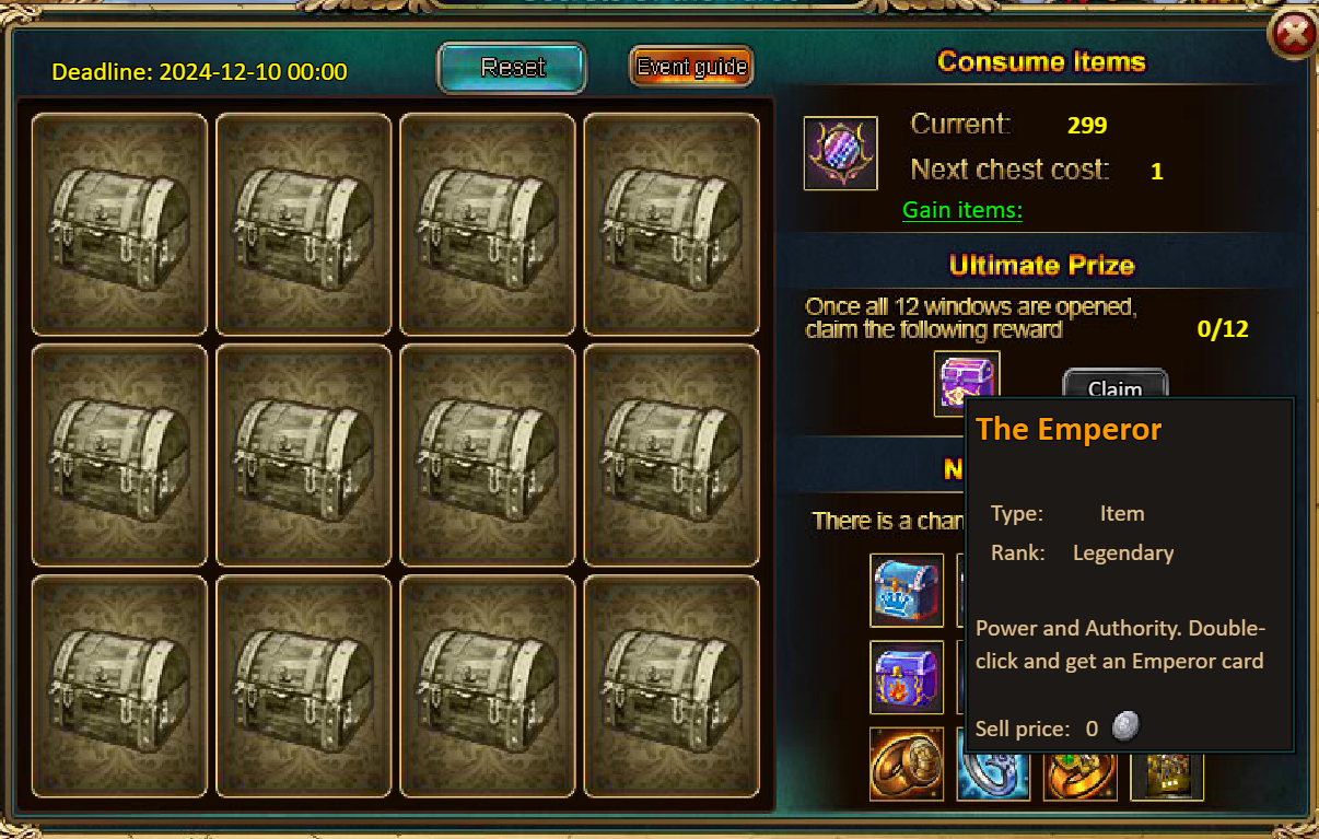 Consume 50,000 gold coins: Black Opal*1, Solar Chest (Legendary)*2, Silver*4,000,000[/u]