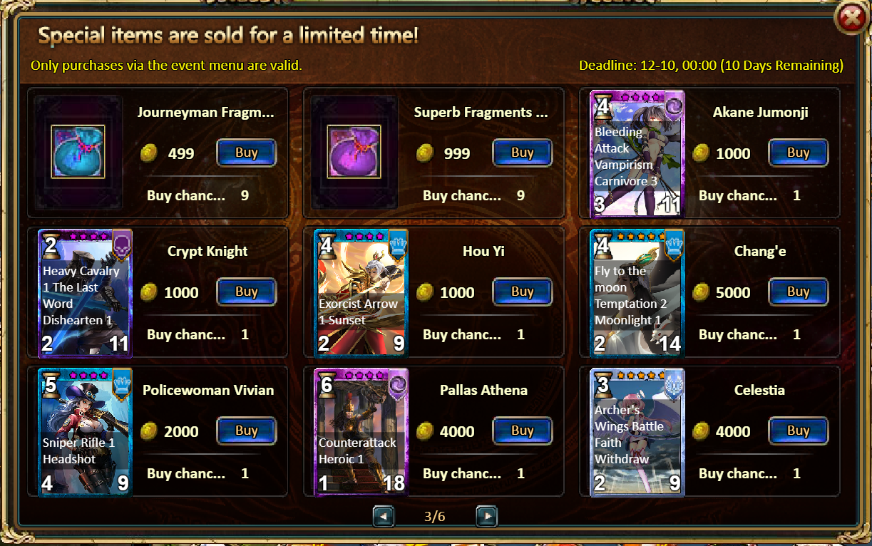 Consume 500 gold coins: Starlight Chest (Epic)*1, Chaotic Wastes Ticket*2, Bread Fragment*10