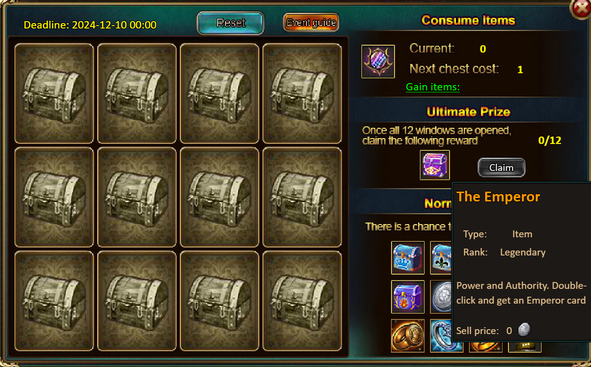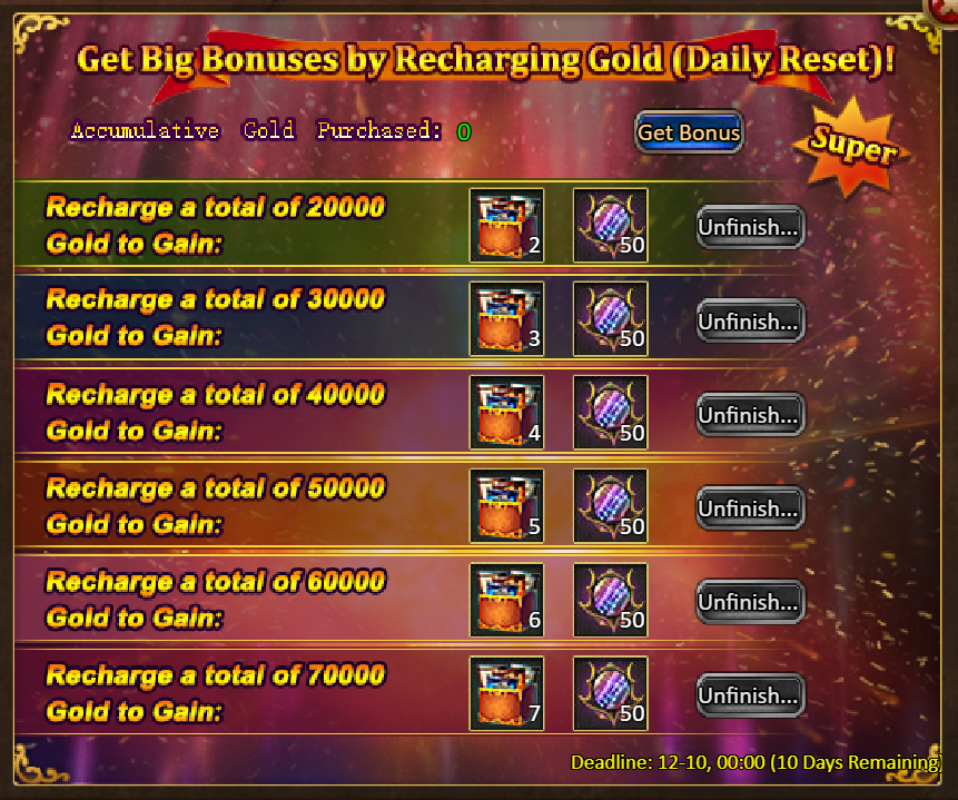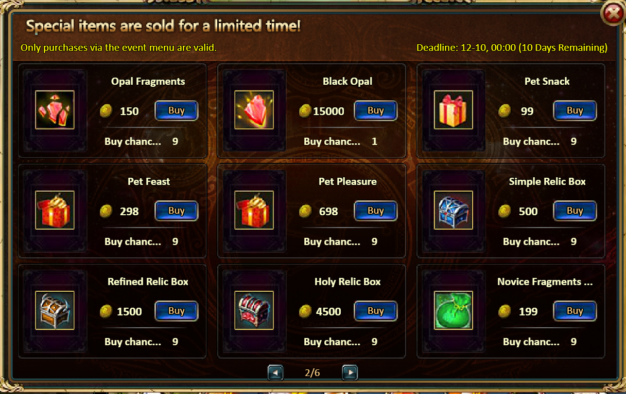 Consume 50,000 gold coins: Black Opal*1, Solar Chest (Legendary)*2, Silver*4,000,000[/u]