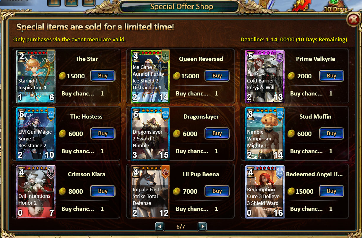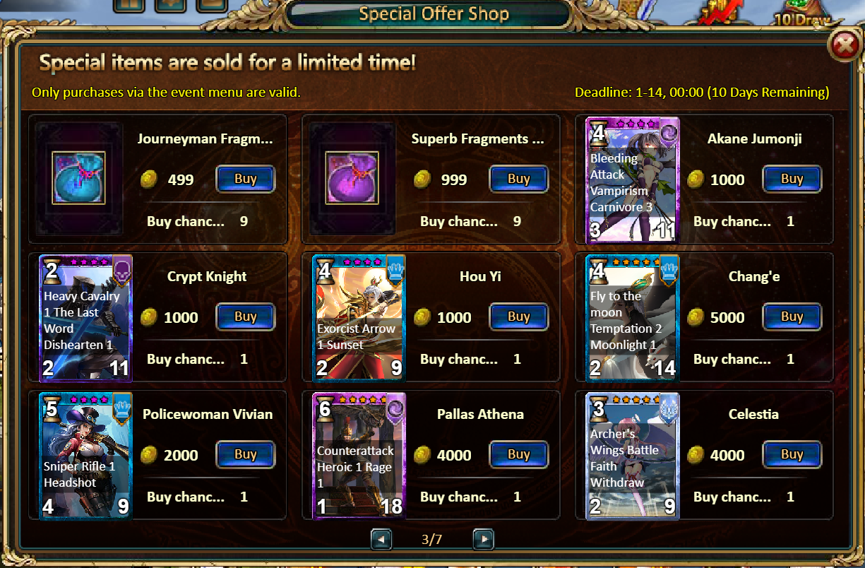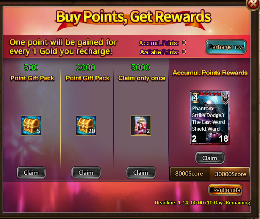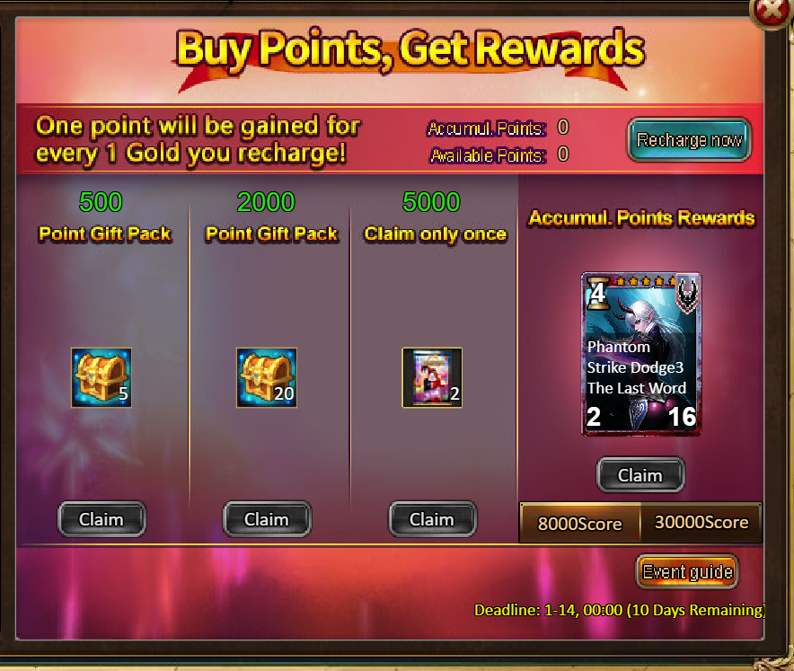 2.Buy Points, Get Rewards: 8000 - Enchantress Evelyn (Legendary) / 30000 - Enchantress Evelyn (Godlike)