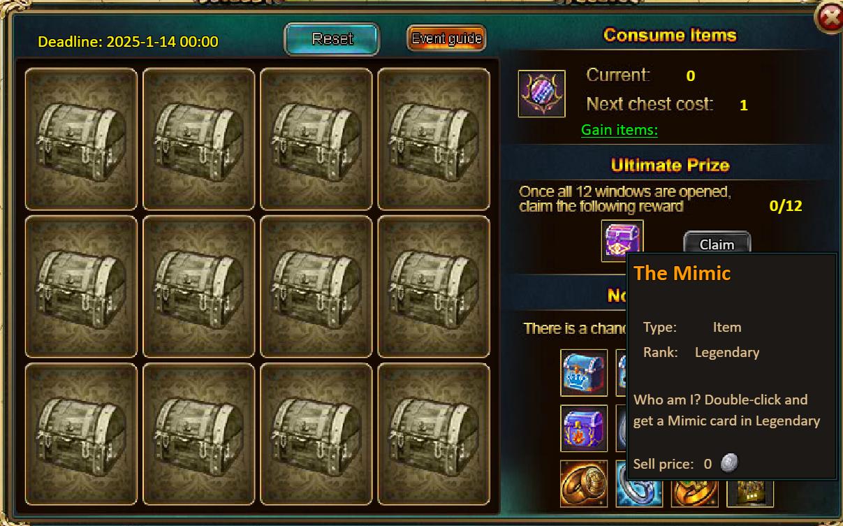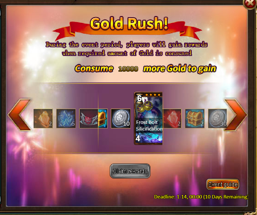 Consume 50,000 gold coins: Black Opal*1, Solar Chest (Legendary)*2, Silver*4,000,000[/u]