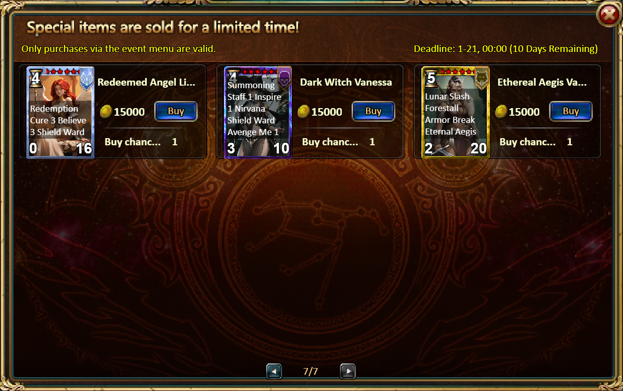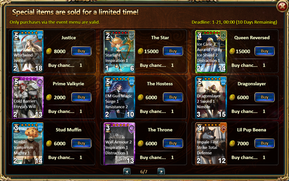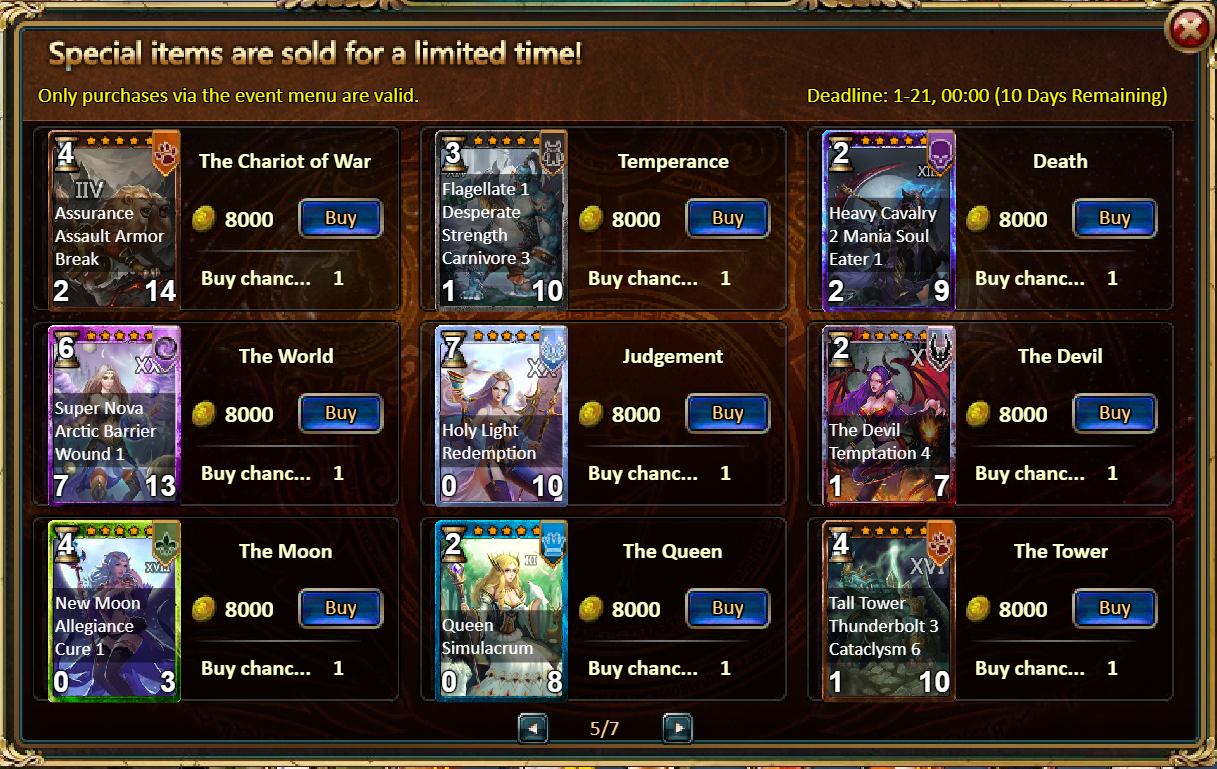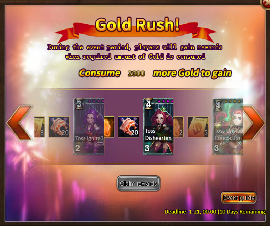 Consume 5,000 gold coins: Elemental Master Hodgkin (Legendary)*1, Fire Opal*2, Chaotic Wastes Ticket*5