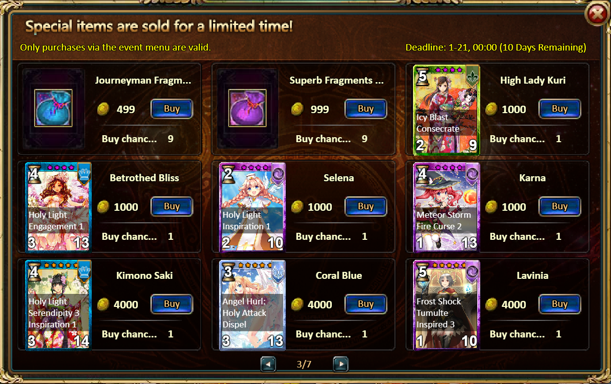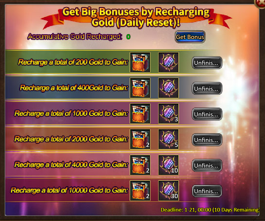 Consume 500 gold coins: Starlight Chest (Epic)*1, Chaotic Wastes Ticket*2, Bread Fragment*10