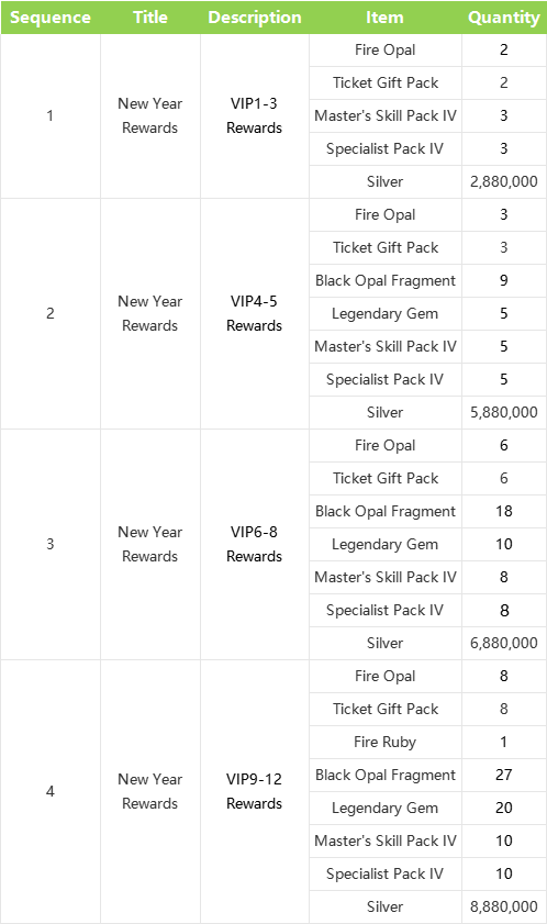 Reward Rules: Players who reach the specified VIP level by 11:59 PM on January 22, 2025, will be eligible to claim the reward package.[/b]