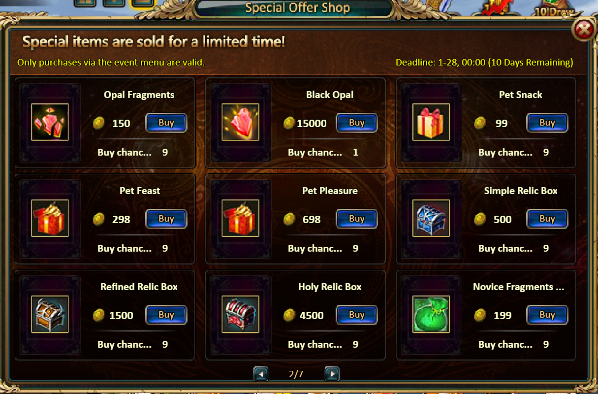 Consume 50,000 gold coins: Black Opal*1, Solar Chest (Legendary)*2, Pet Pleasure*5[/u]