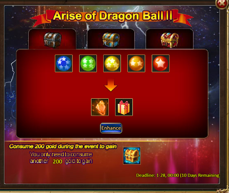 Consume 500 gold coins: Starlight Chest (Epic)*1, Mystic Valley Ticket*2, Bread Fragment*10
