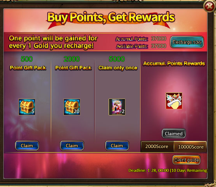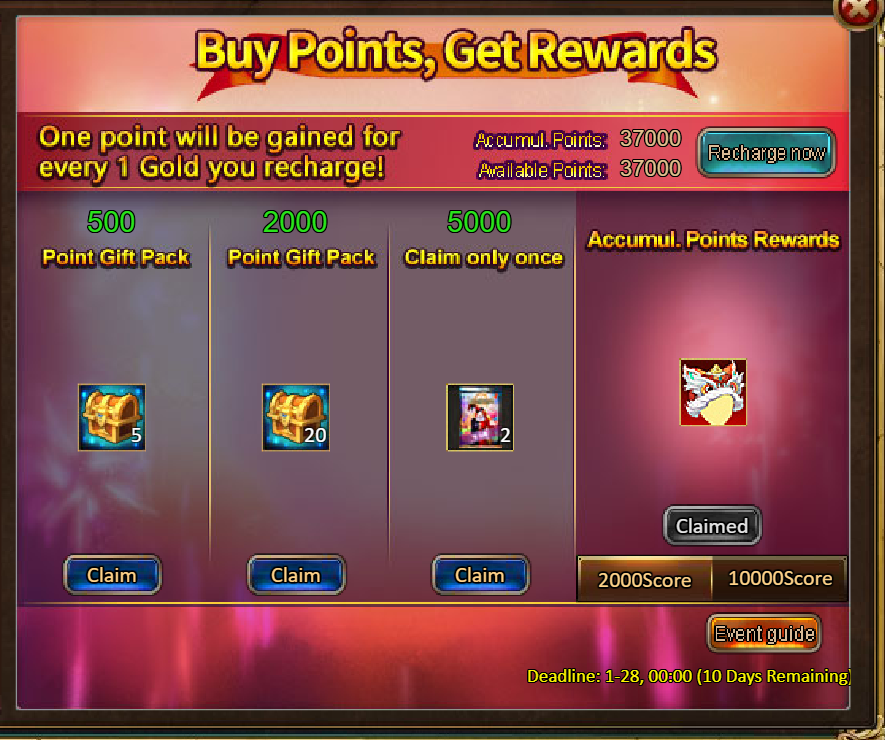 2.Buy Points, Get Rewards: 2000 - Spring Lion Dance (Legendary) / 10000 - Spring Lion Dance (Godlike)