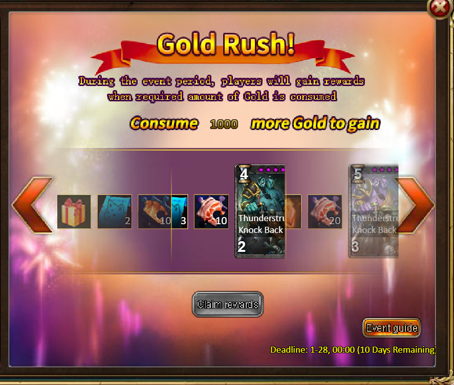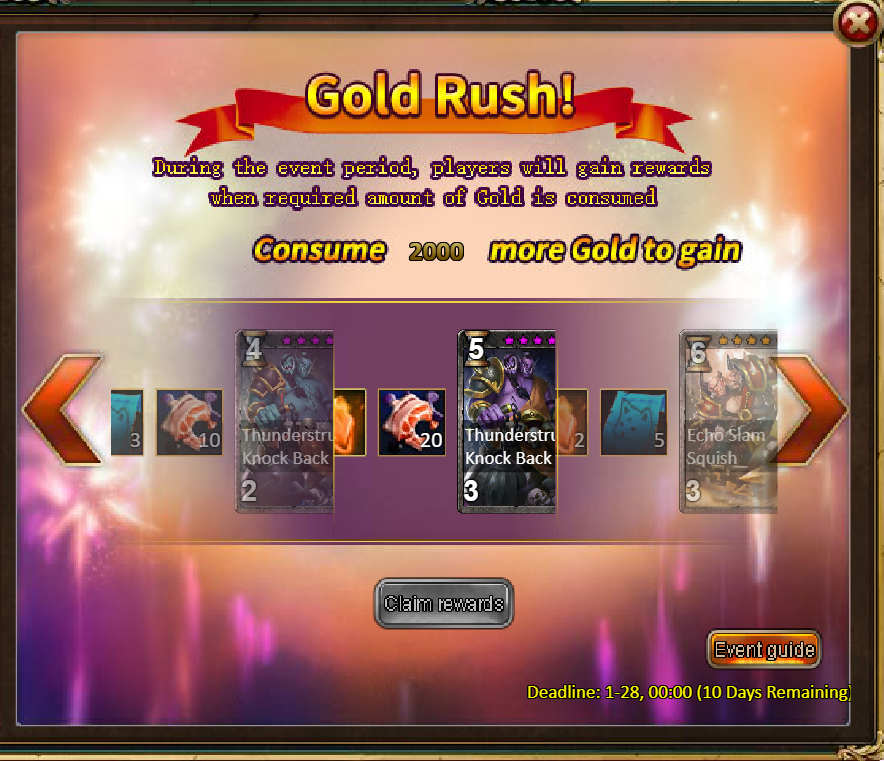 Consume 1,000 gold coins: Hammer Ogre Crusher (Epic)*1, Mystic Valley Ticket*3, Tender Steak Fragment*10