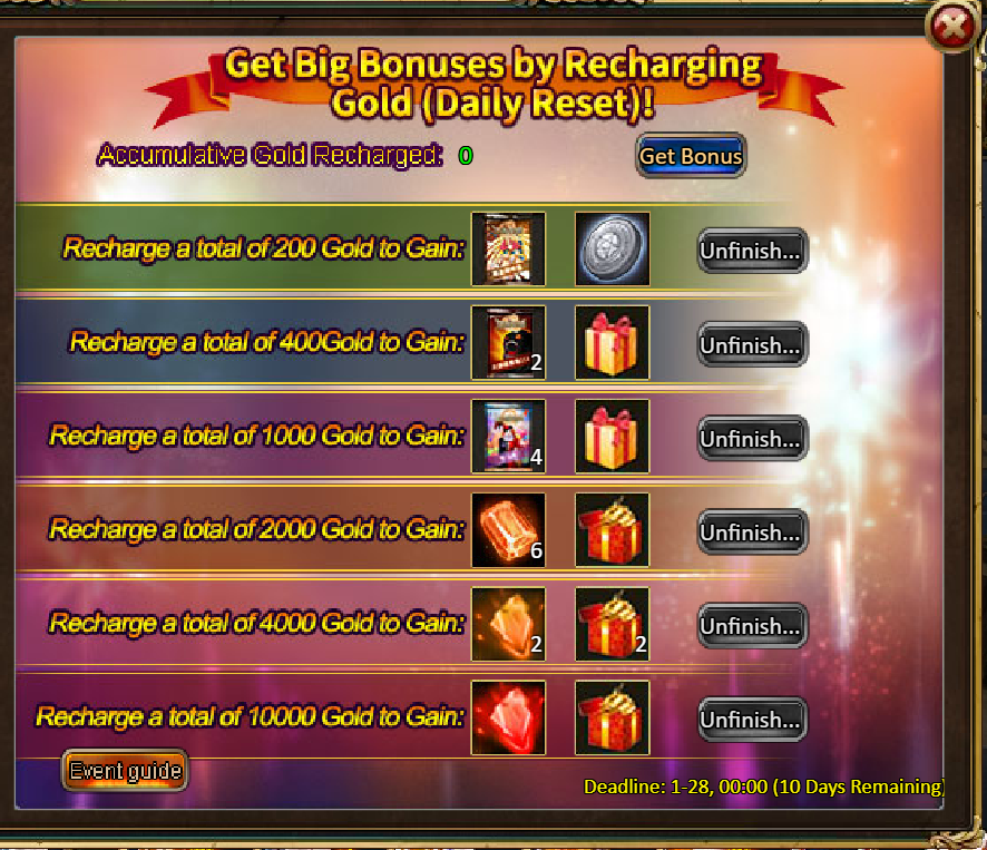 [u]200-level Rewards: Egyptian God Pack*1, Silver*10,000