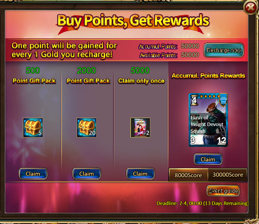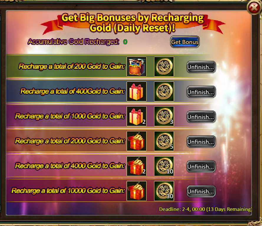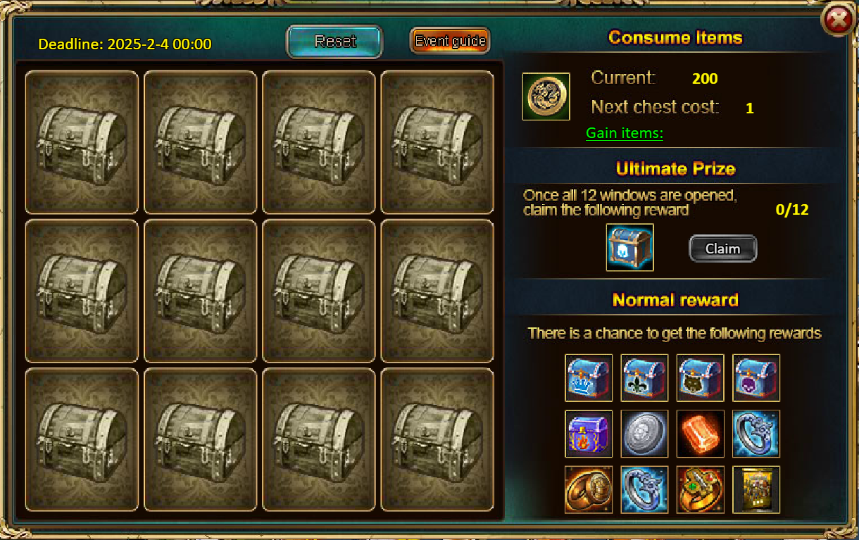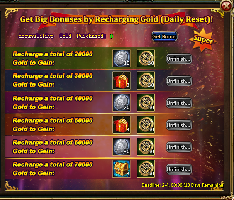 Consume 50,000 gold coins: Black Opal*1, Solar Chest (Legendary)*2, Silver*4,000,000[/u]