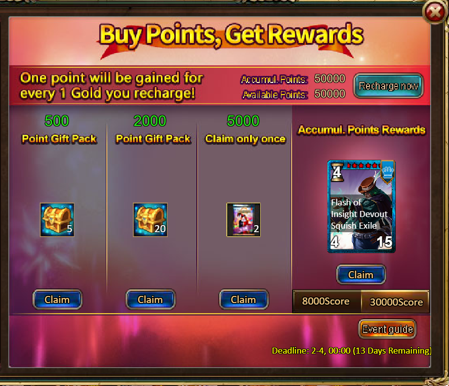 2.Buy Points, Get Rewards: 8000 - Devout Jace (Legendary) / 30000 - Devout Jace (Godlike)
