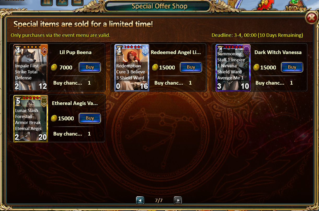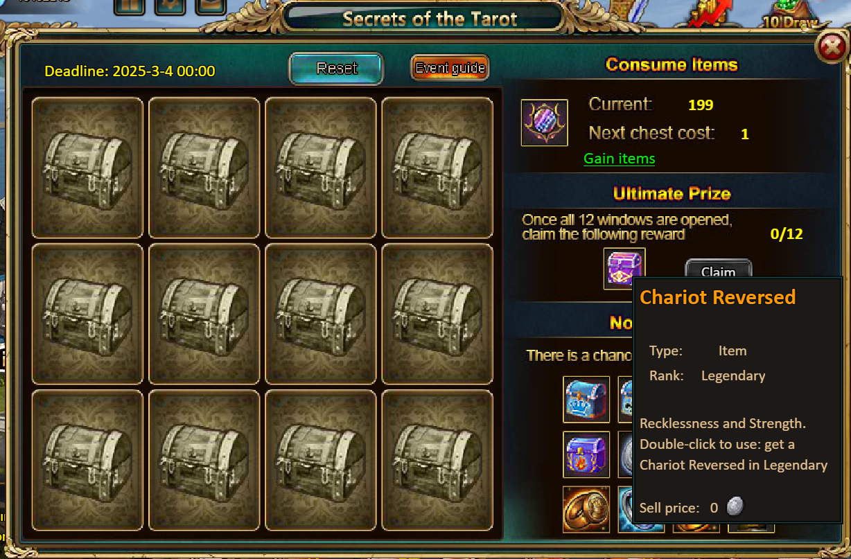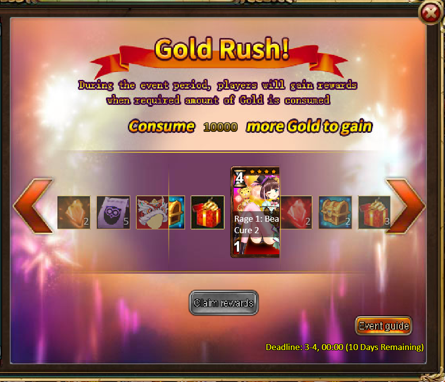 Consume 10,000 gold coins: Reika (Legendary)*1, Solar Chest (Legendary)*1, Pet Pleasure*1