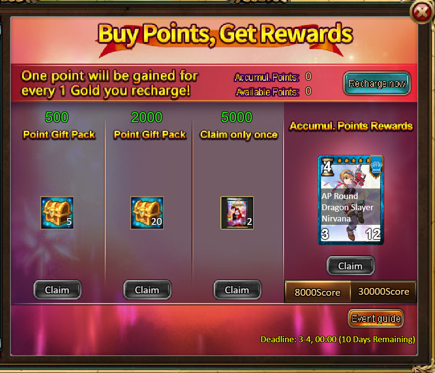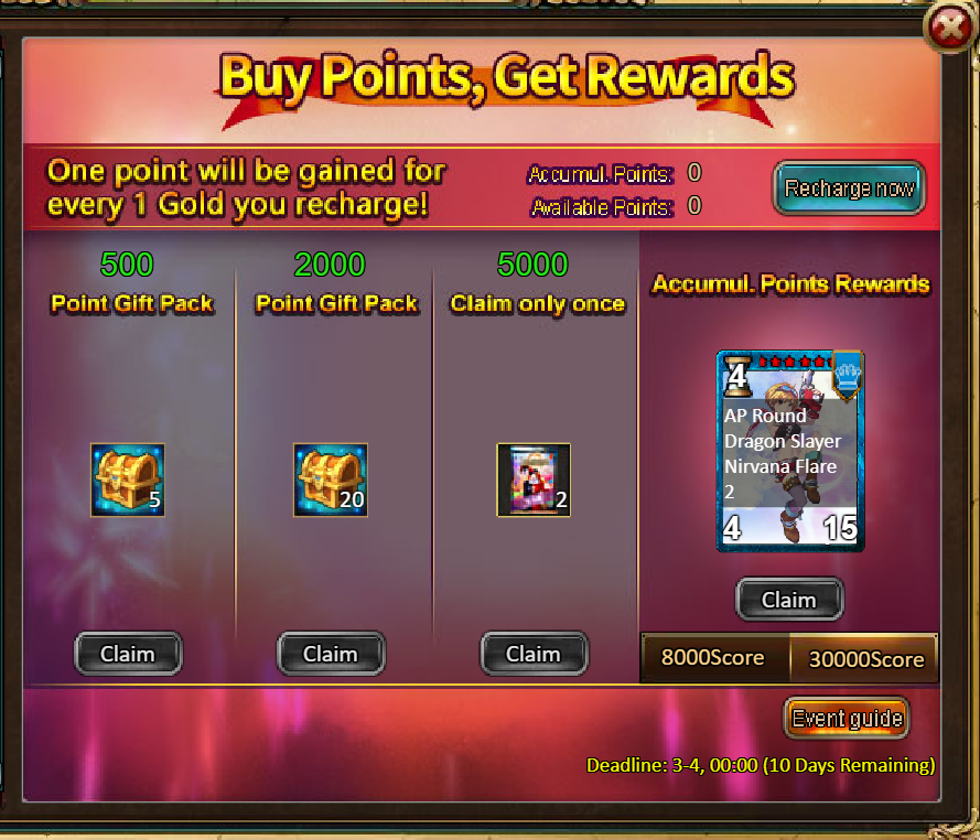 2.Buy Points, Get Rewards: 8000 - Gunsmith Aymerda (Legendary) / 30000 - Gunsmith Aymerda (Godlike)