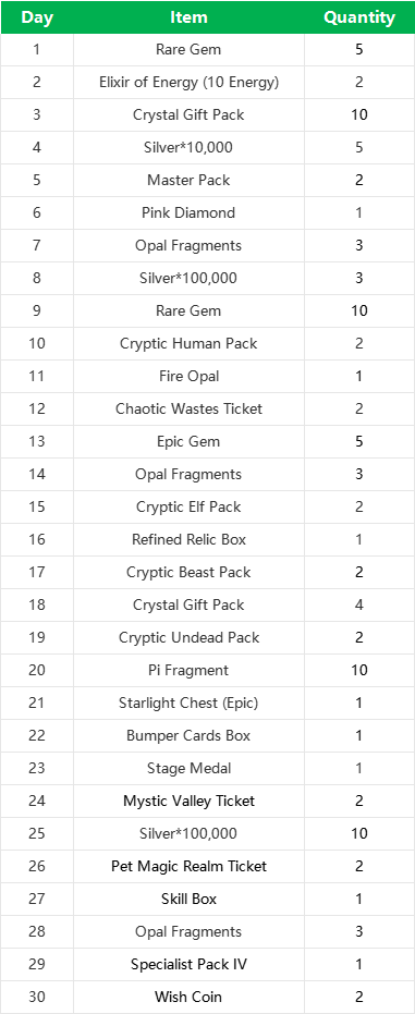 See the pictures for details. The event content is subject to the game content. The official has the final right of interpretation.