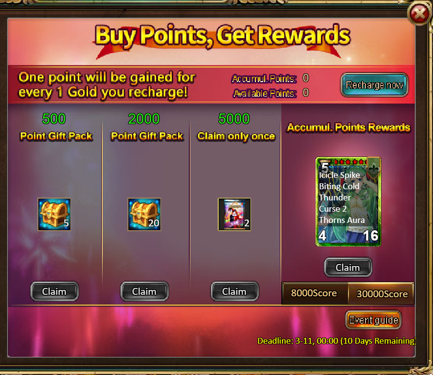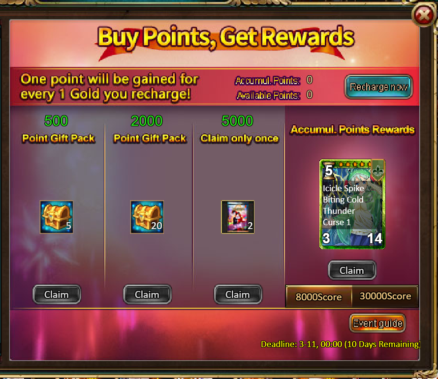 2.Buy Points, Get Rewards: 8000 - Meiyu Silva (Legendary) / 30000 - Meiyu Silva (Godlike)
